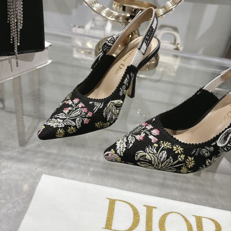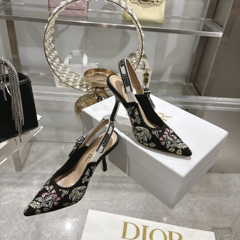 Step into timeless floral elegance with these Christian Dior-inspired slingbacks featuring multicolor embroidery on a sleek black base. Designed with a pointed toe and a slim stiletto heel, they’re the perfect statement piece for any dressy occasion or formal event.