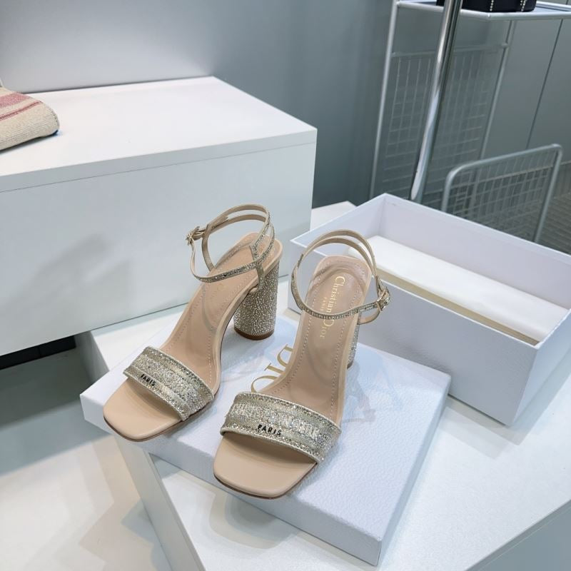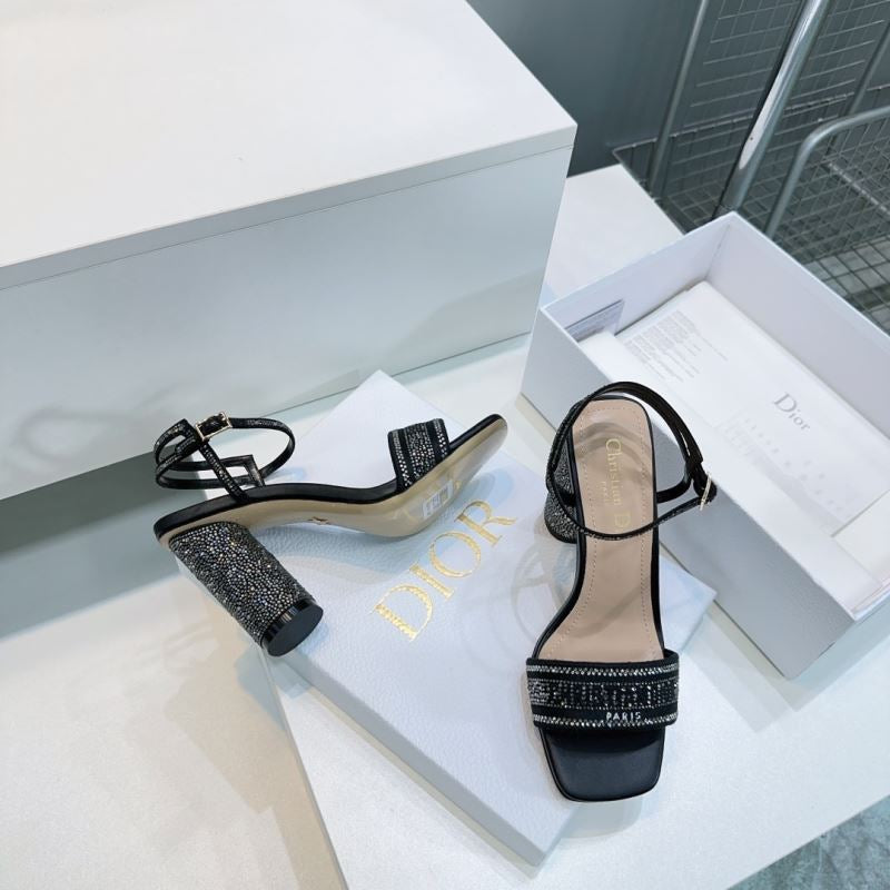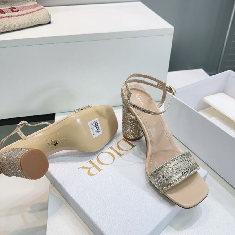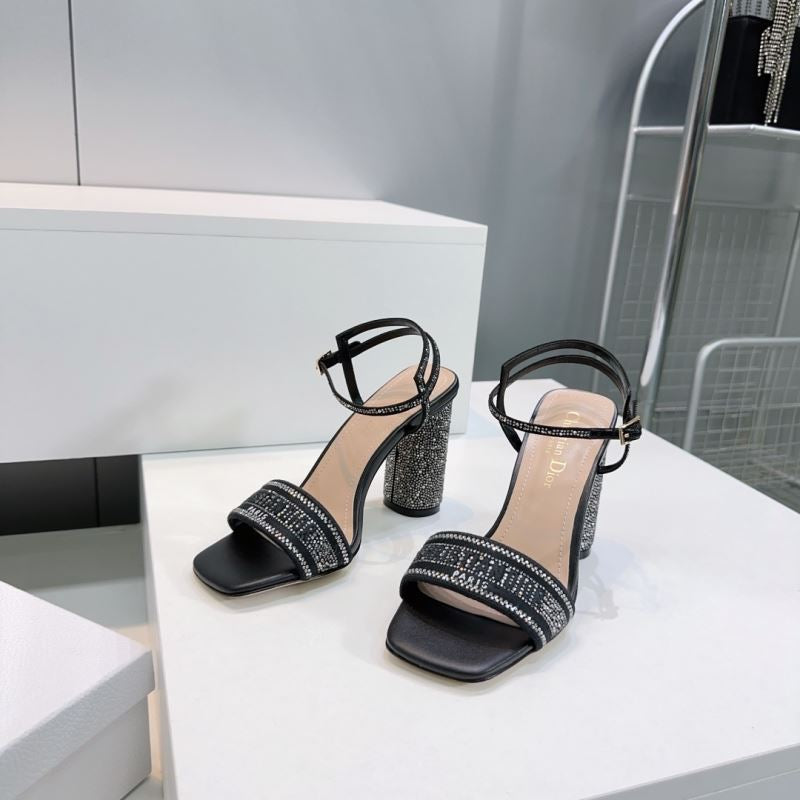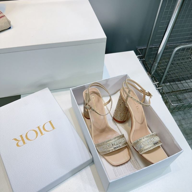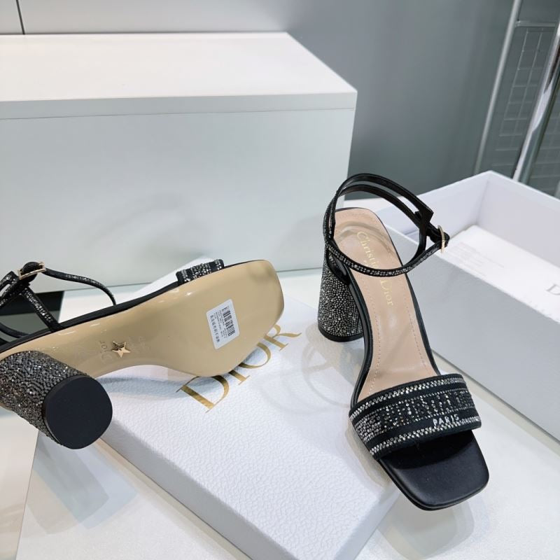 Step into sparkle with these Christian Dior-inspired block heel sandals. Featuring a glittering rhinestone-covered heel, logo-detailed strap, and ankle buckle closure, they’re perfect for turning heads at weddings, formal events, or glamorous nights out.