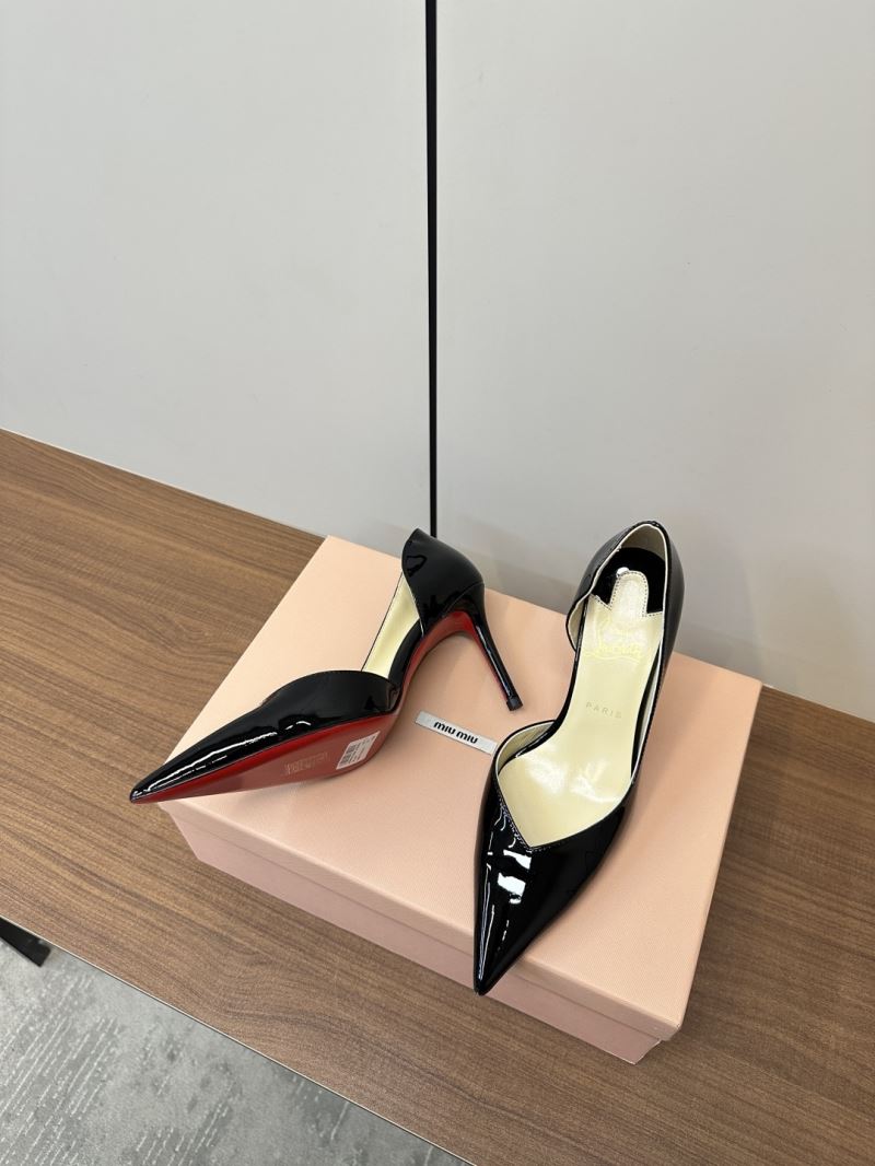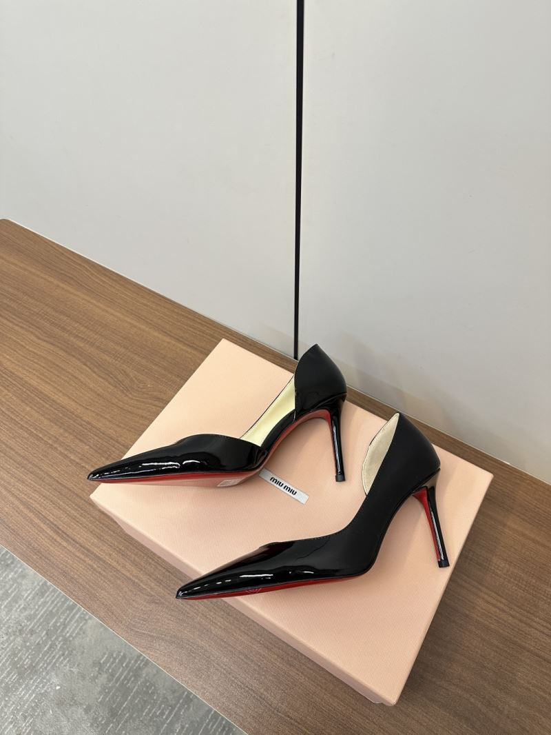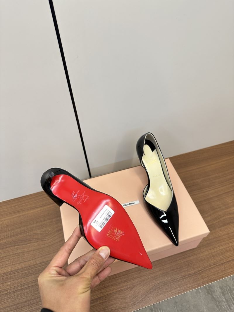Elevate your style with these sleek and sexy high-heeled pumps, crafted in high-gloss patent leather with a striking pointed toe and iconic red bottom sole. Perfect for evening wear, formal events, or adding instant glam to your outfit.
