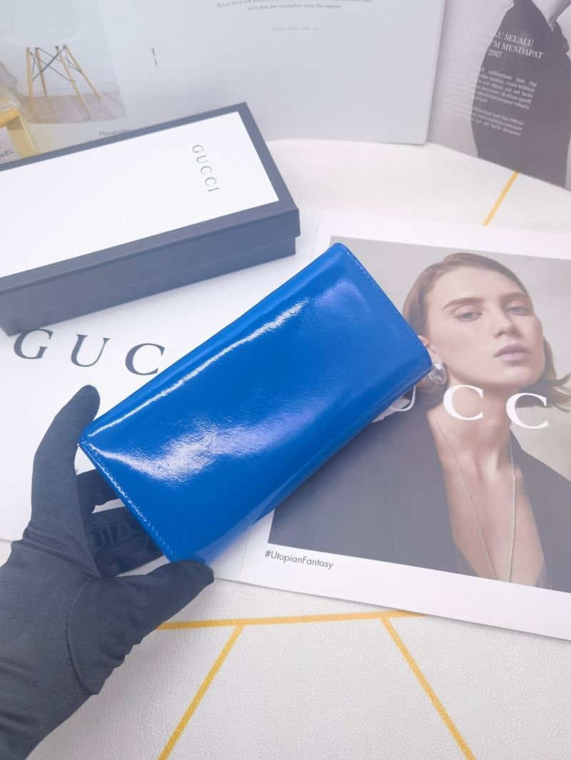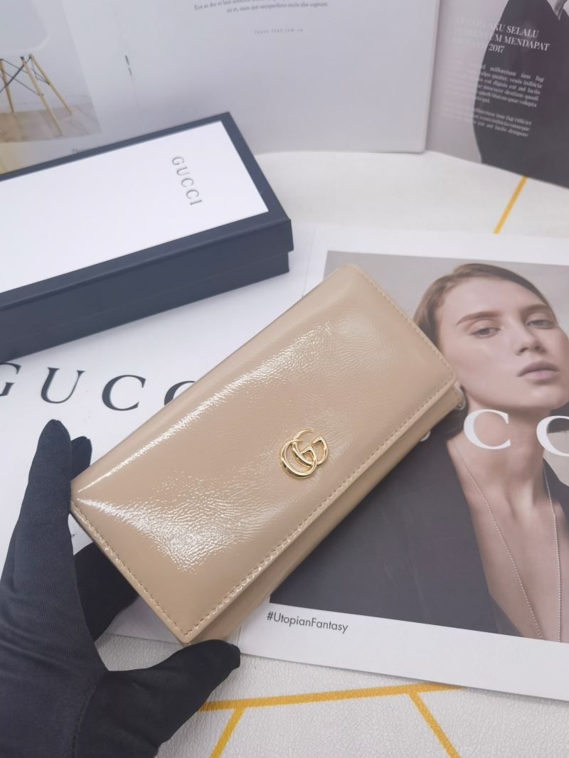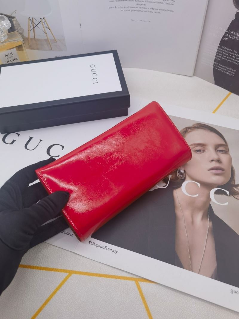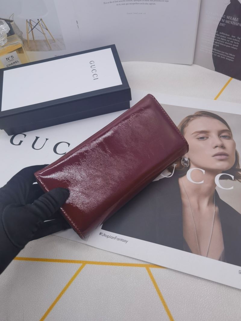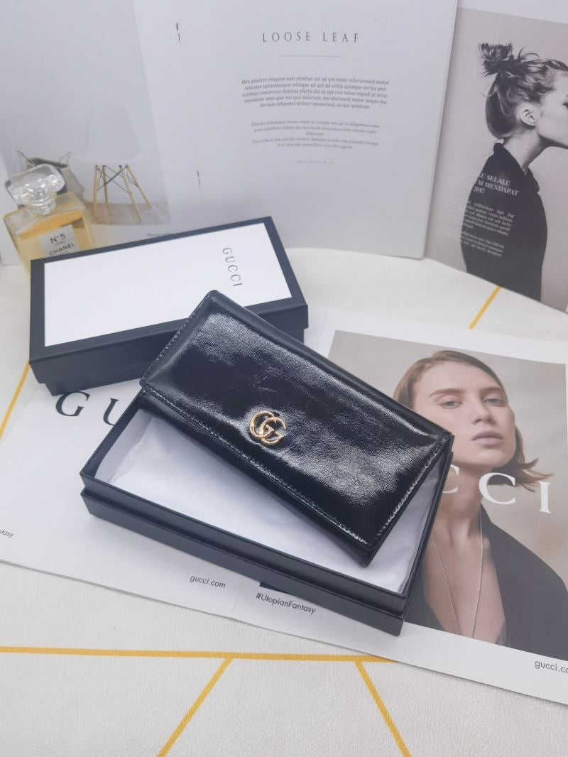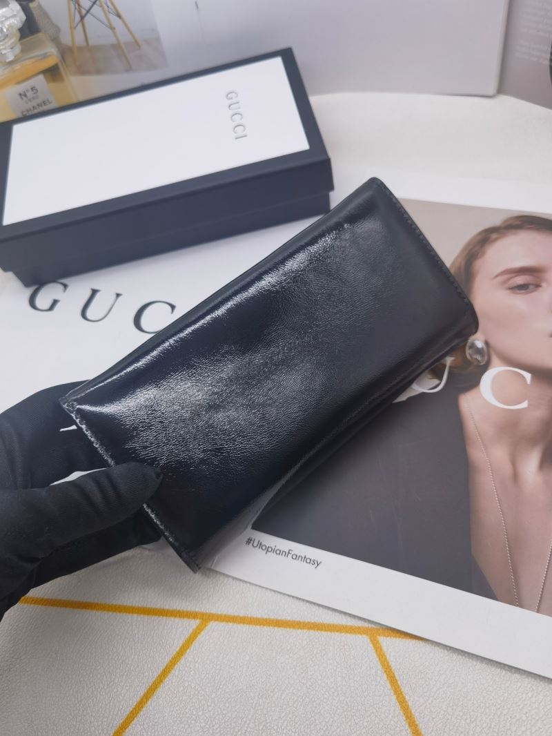 • Features a sleek, high-shine patent finish with the classic GG logo in gold