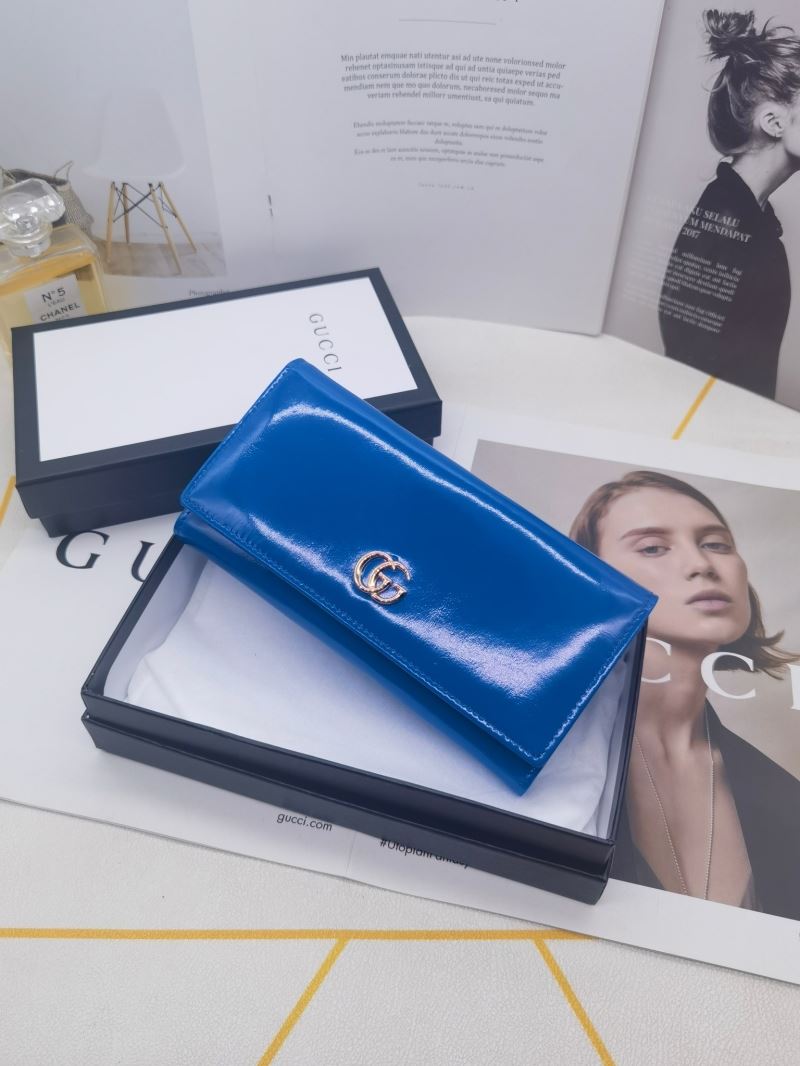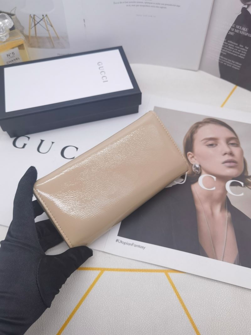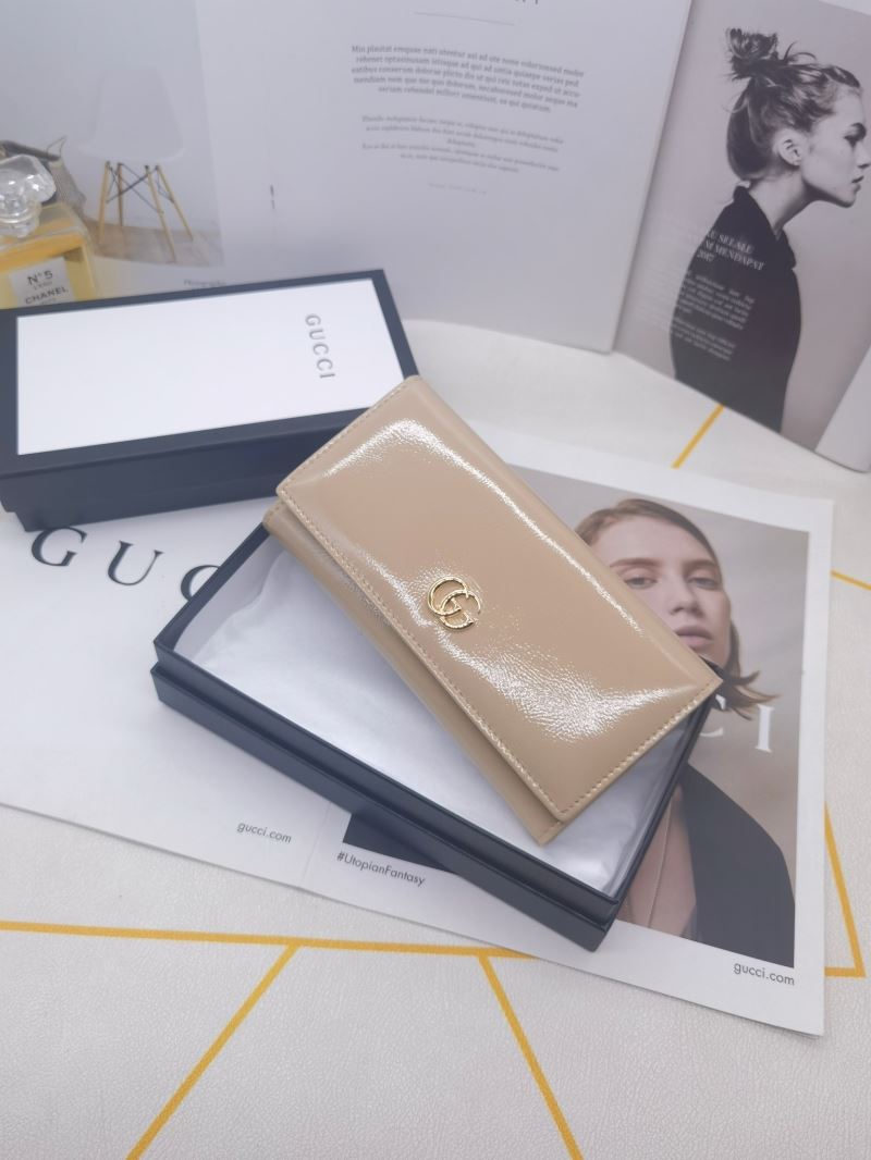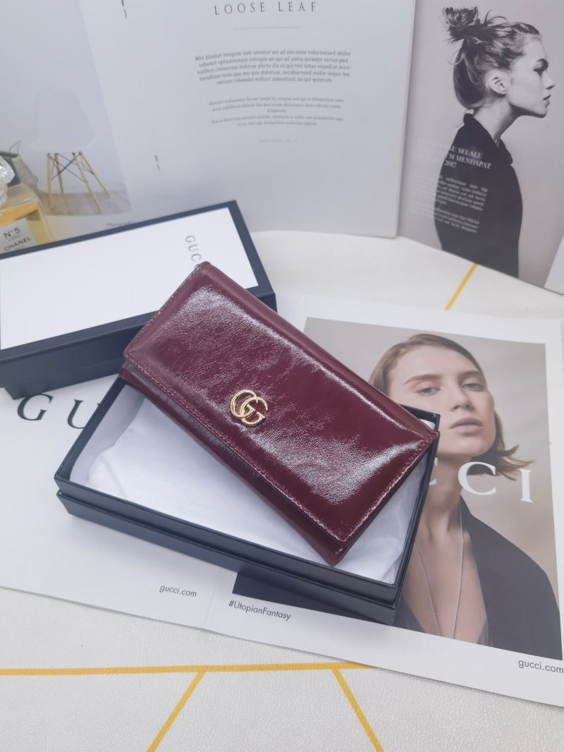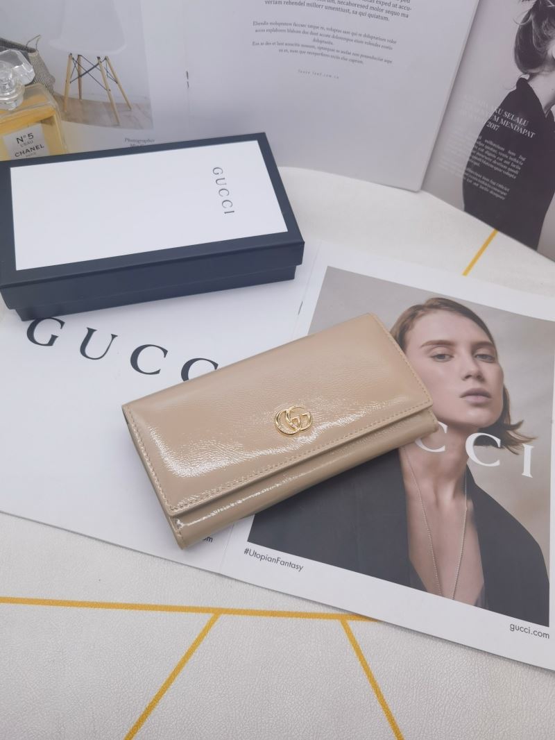 • Features a sleek, high-shine patent finish with the classic GG logo in gold