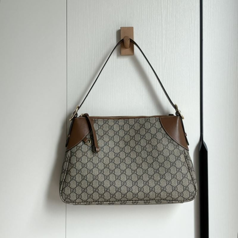 The new GG Emblem collection reinterprets the House’s history of elegance and craftsmanship. This large shoulder bag features numbered notches on the adjustable shoulder strap, inspired by the equestrian world.