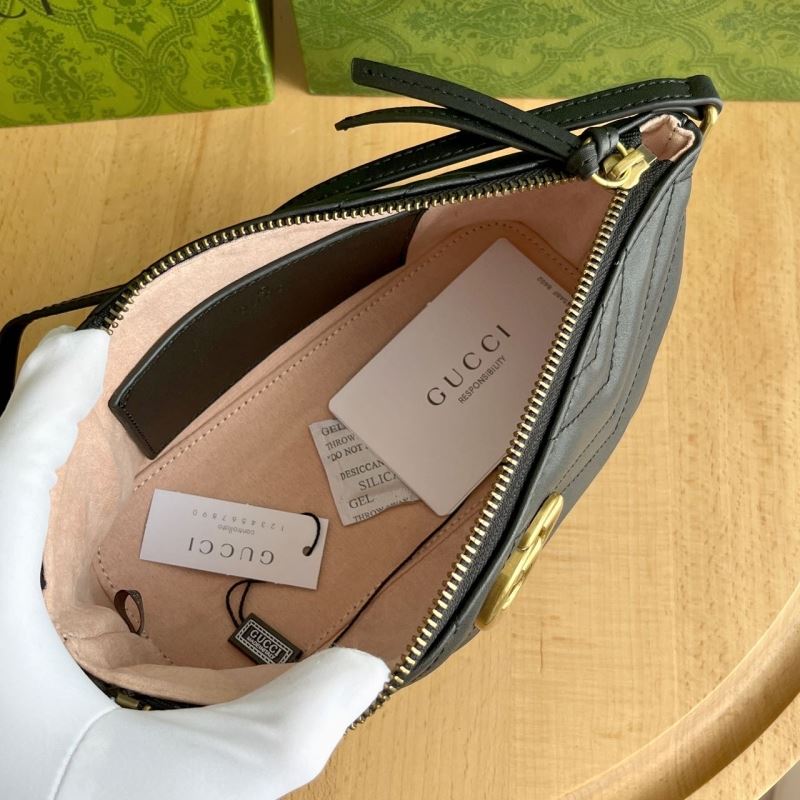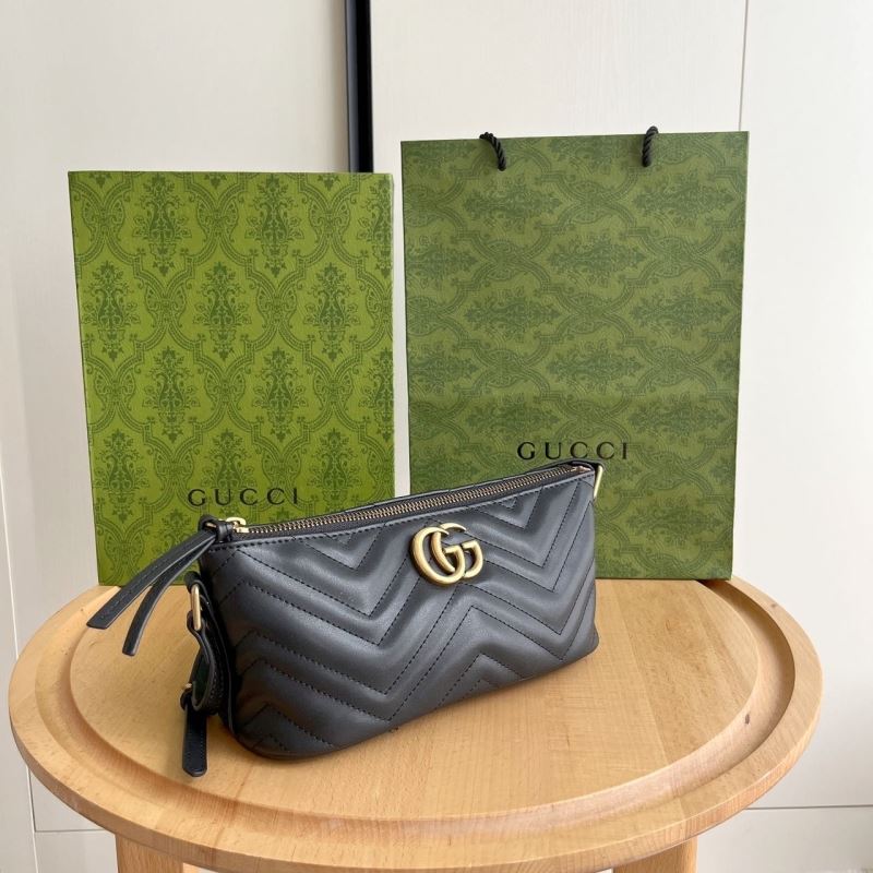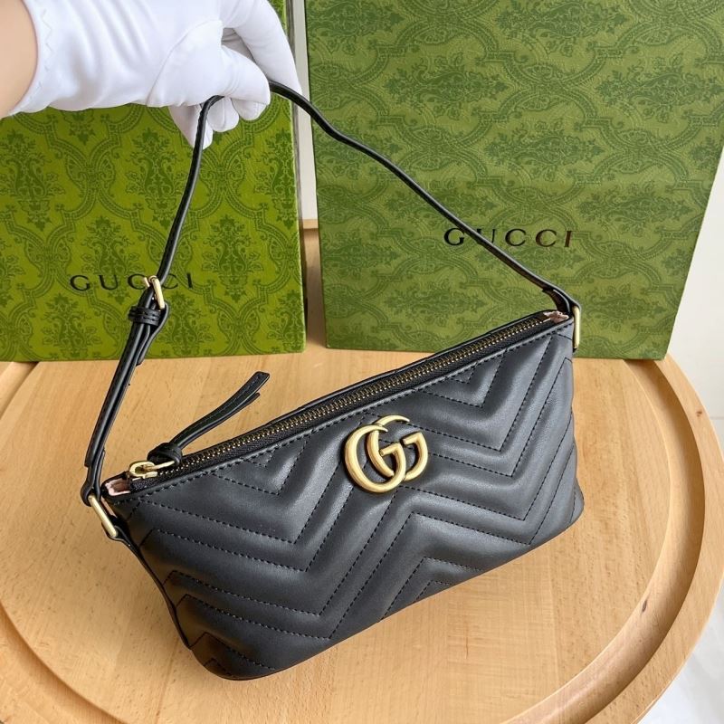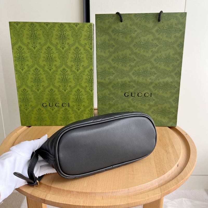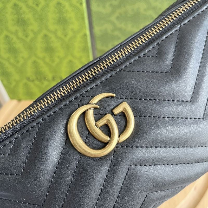 Gucci crafts this black GG Marmont in Italy using supple leather, then decorates it with quilted stitching and a gold logo plaque.