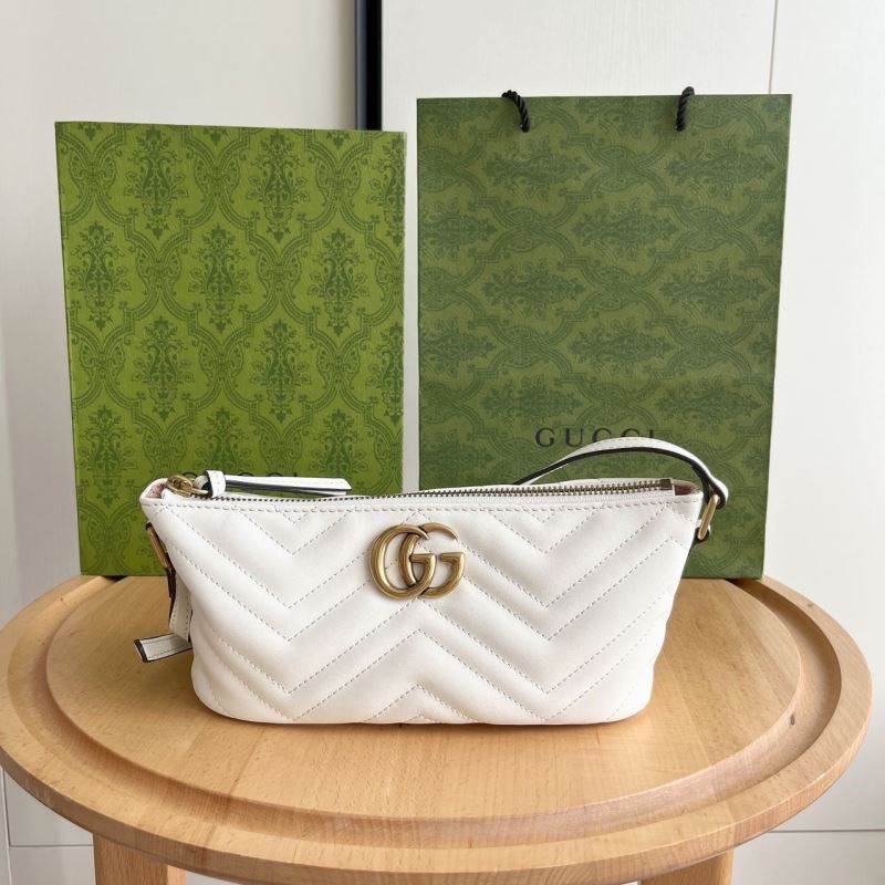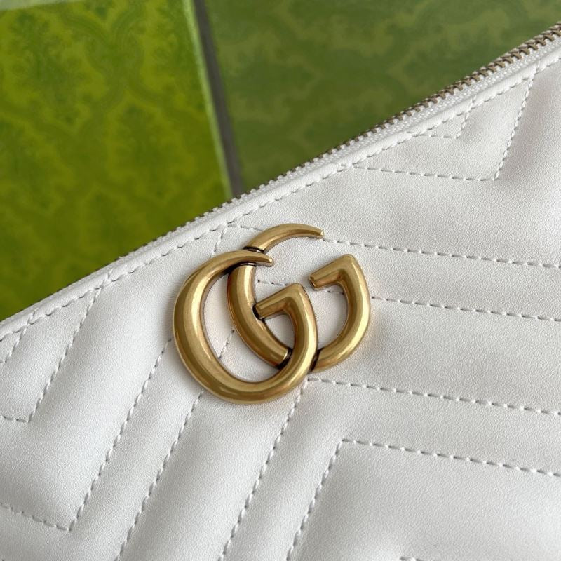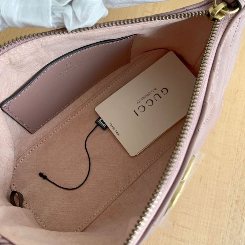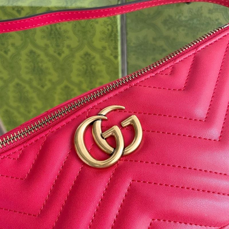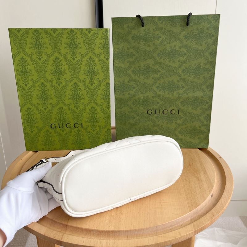 Gucci crafts this black GG Marmont in Italy using supple leather, then decorates it with quilted stitching and a gold logo plaque.