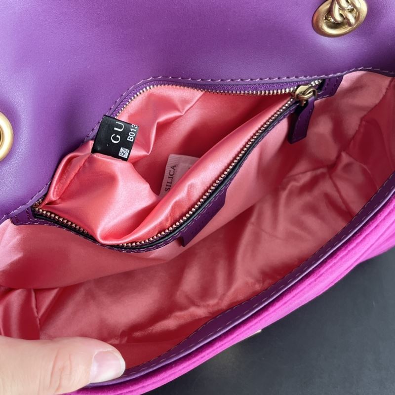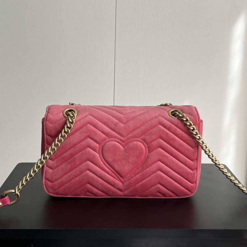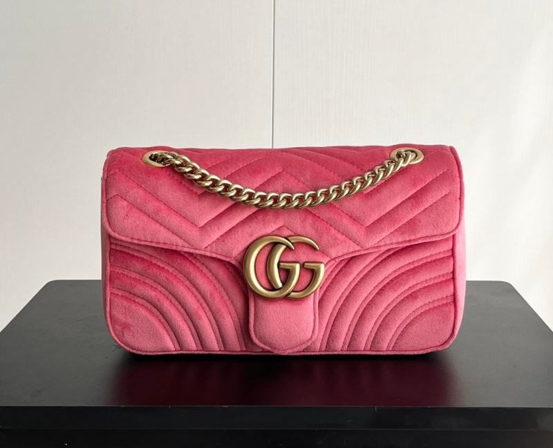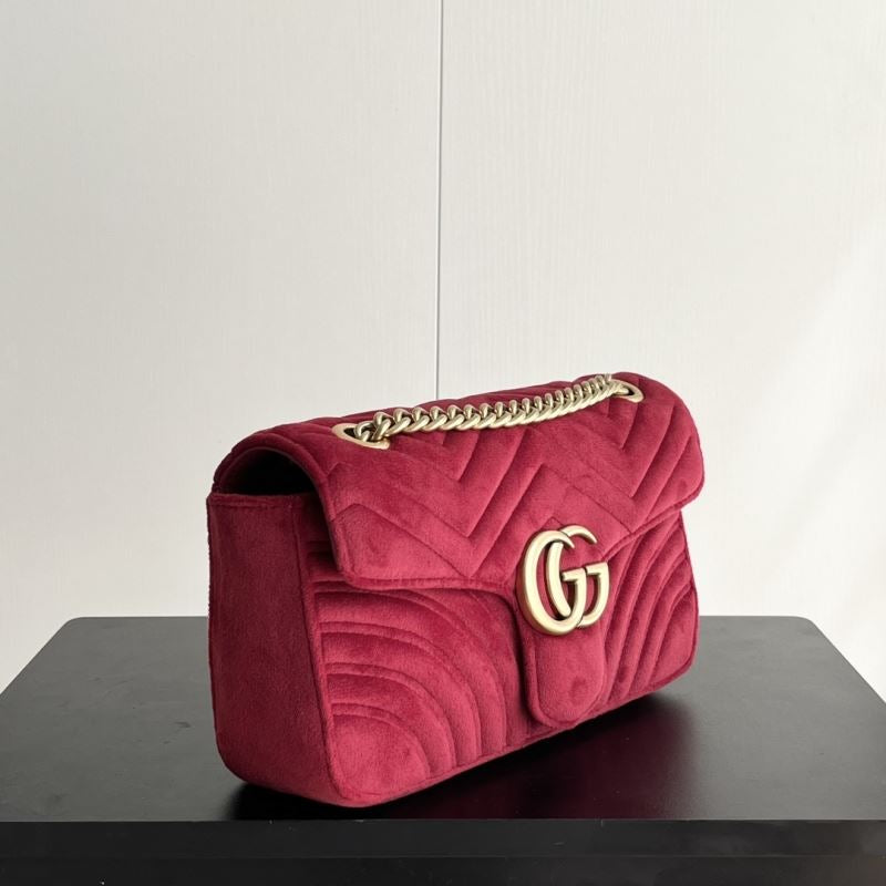 Embellished with the archival Double G logo, first introduced in the 1970s, the GG Marmont bag has established itself as a signature style of the House. The two capital letters of the style’s name refer to this emblem, recognizable by the partially overlapping hardware on the handbag’s front. Crafted from soft matelassé leather, the elegant handbag is evocative of Florentine craftsmanship.