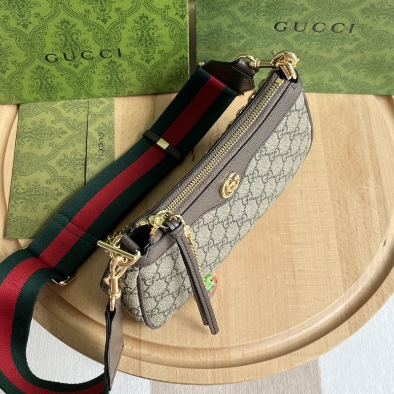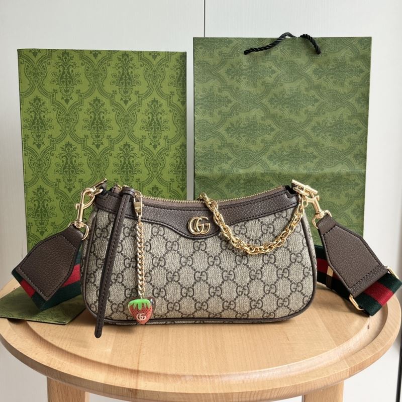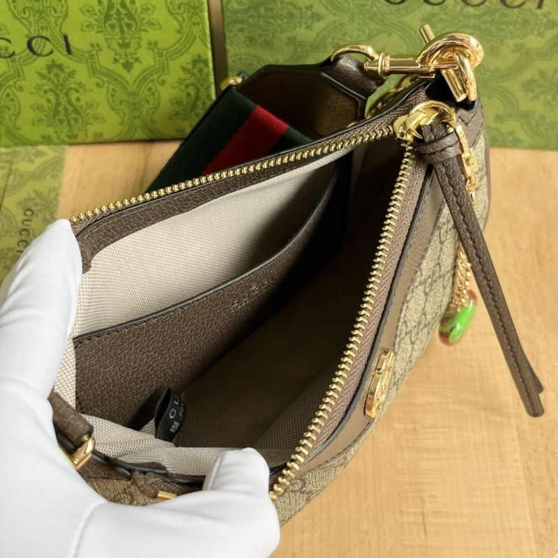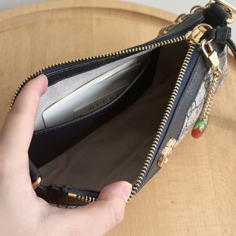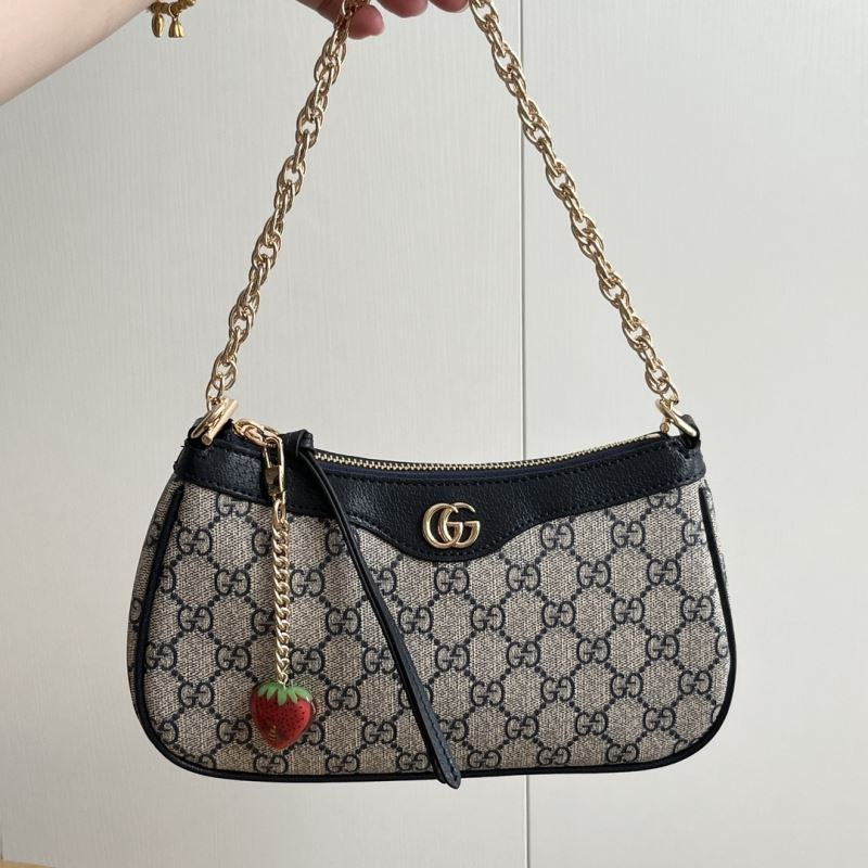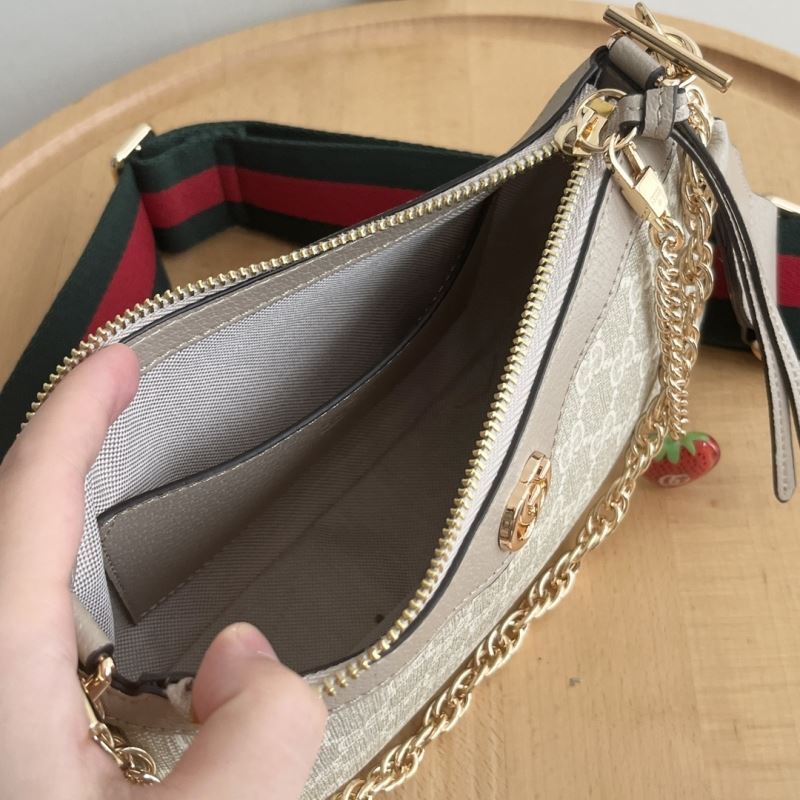 • Includes zip closure, detachable chunky gold chain, and signature red-green web strap for crossbody or shoulder wear.