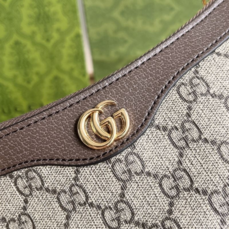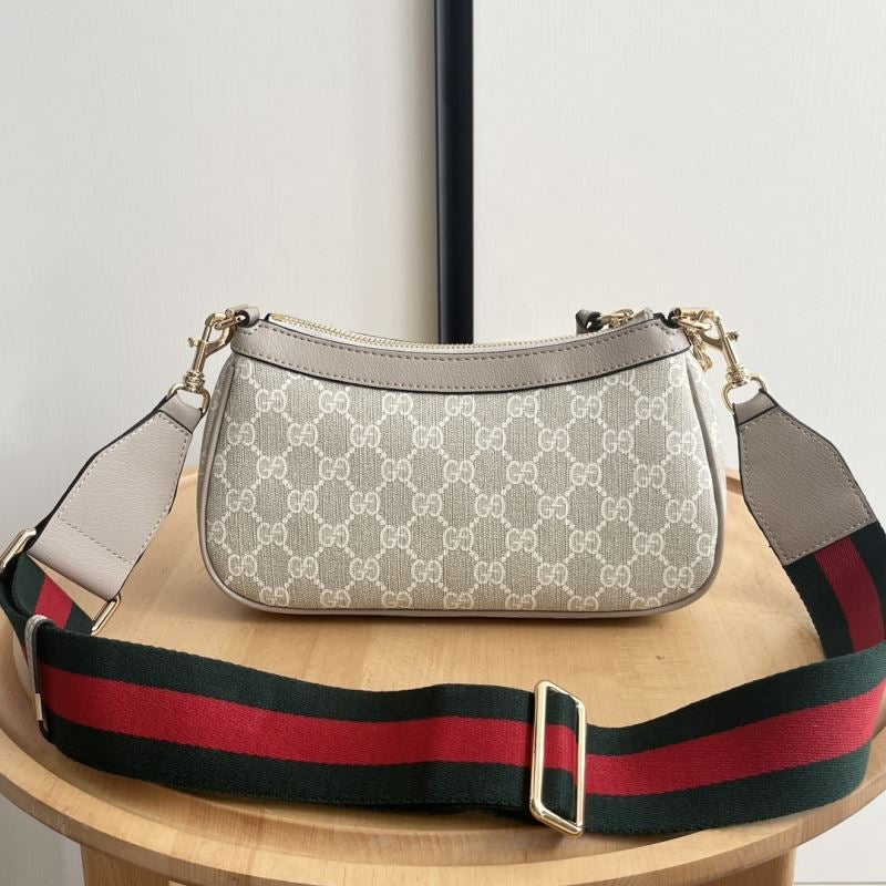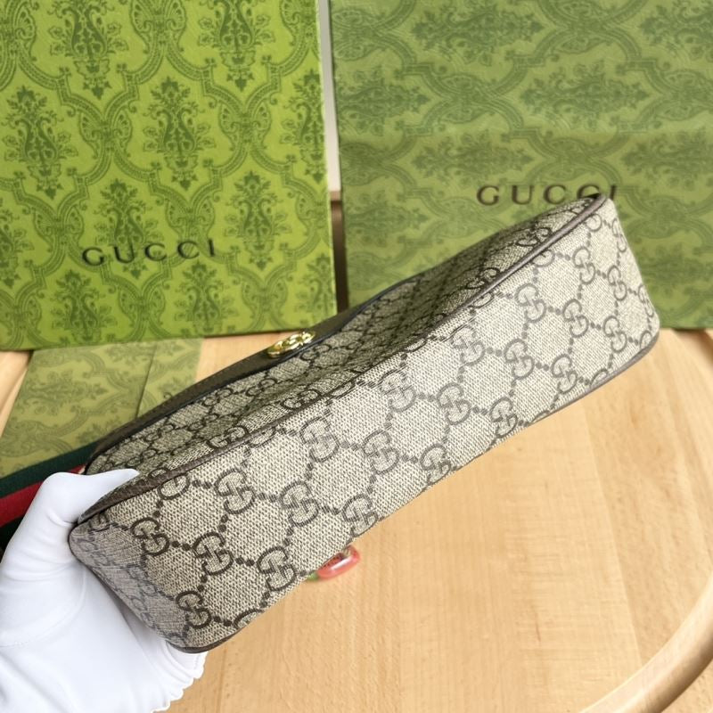 • Made with GG Supreme beige canvas, taupe leather trim, and gold-tone GG logo on the front.