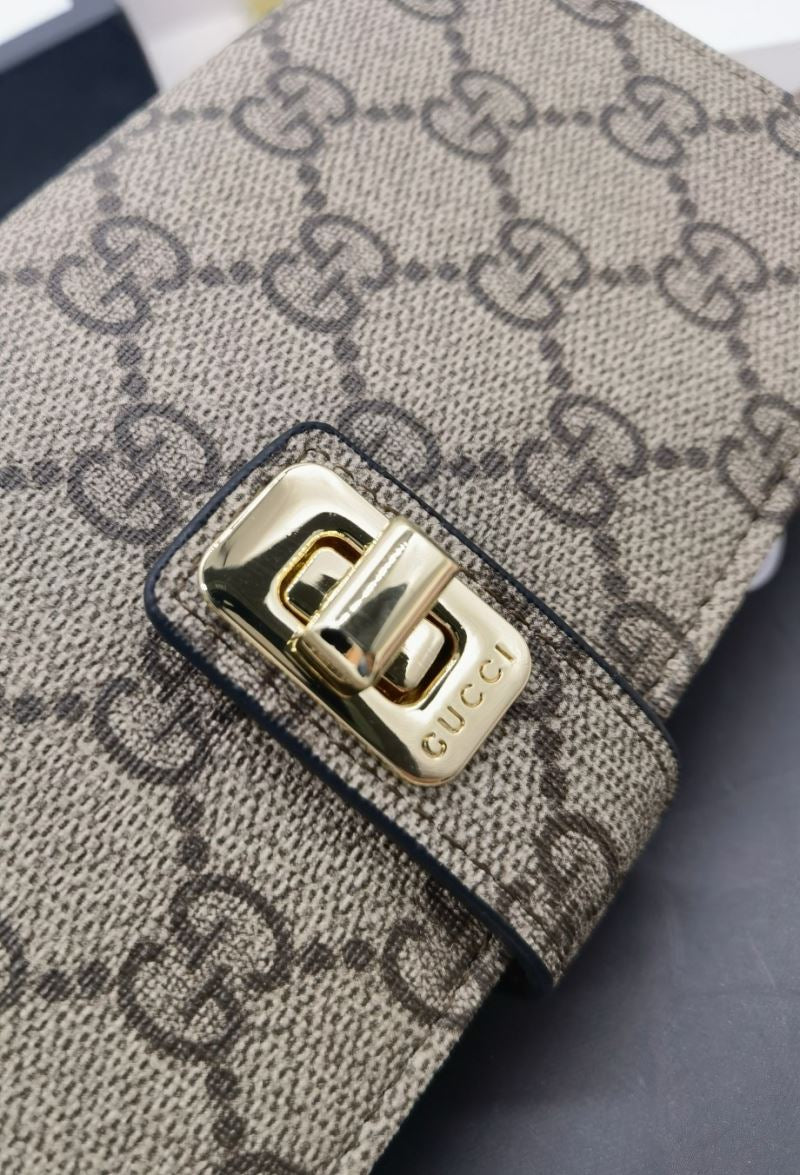 • Classic GG canvas with dark brown interior and elegant gold clasp
