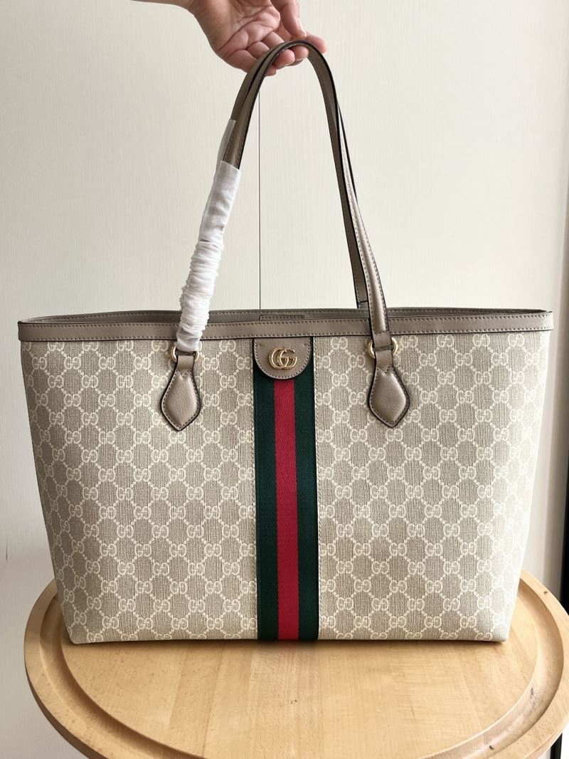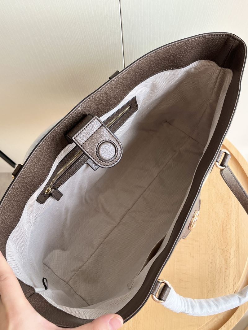 A timeless piece from Gucci’s iconic Ophidia line, this tote bag blends classic heritage style with modern function. Crafted from the signature GG Supreme canvas, it’s trimmed with brown textured leather and finished with the recognizable green and red Web stripe down the center. The gold-tone Double G hardware adds a touch of luxury, while the spacious interior makes it perfect for everyday use or travel.