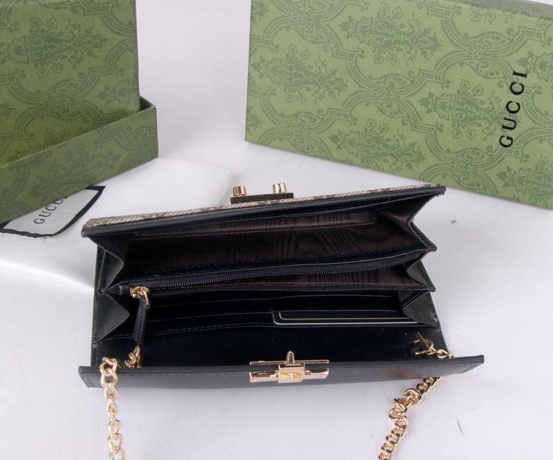 • Interior includes multiple card slots, a central zipper pocket, and compartments for bills or essentials