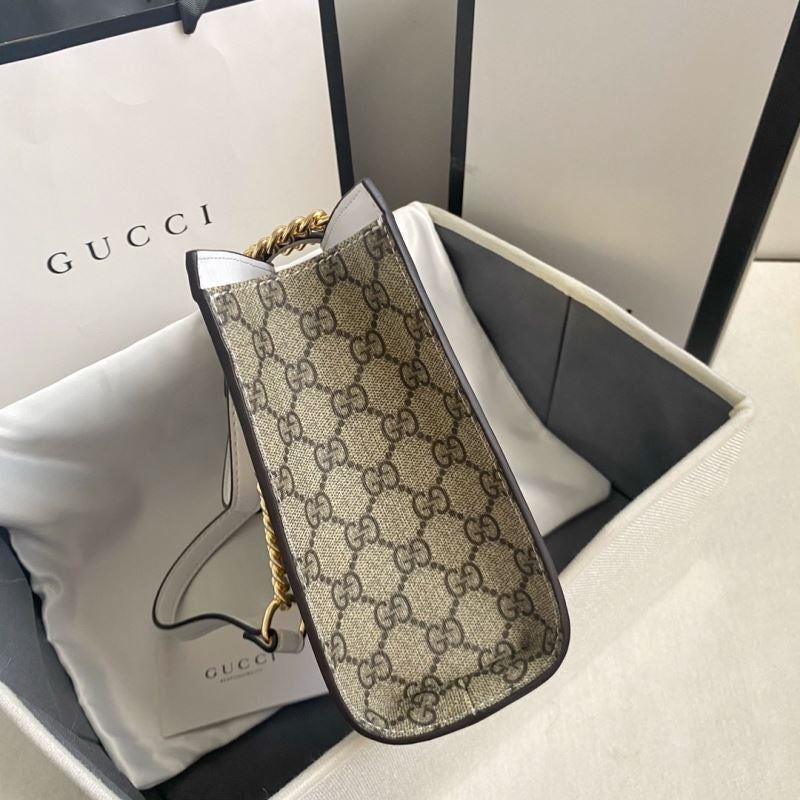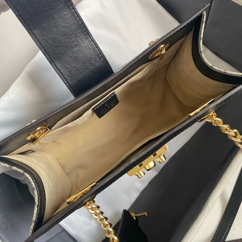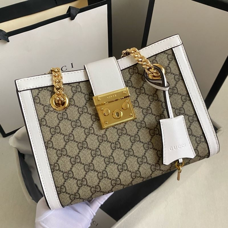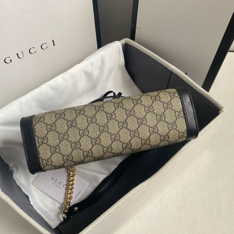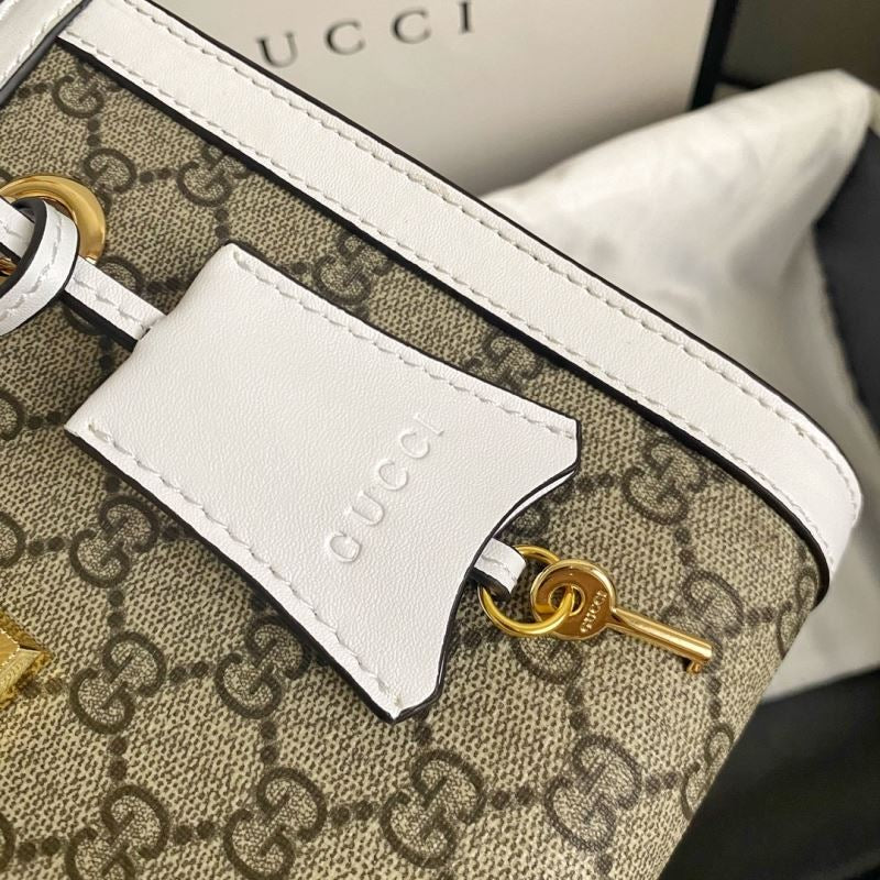 A structured shoulder bag in GG Supreme with a strap that secures with a key lock closure pulled straight from the archives. The key is placed in a detachable leather key case.