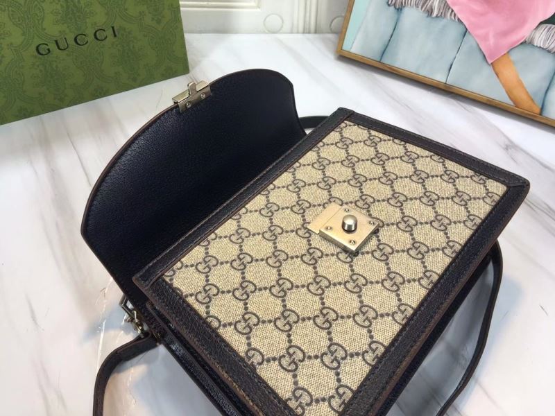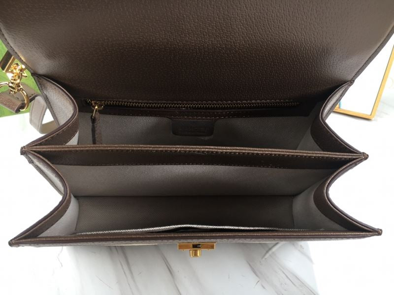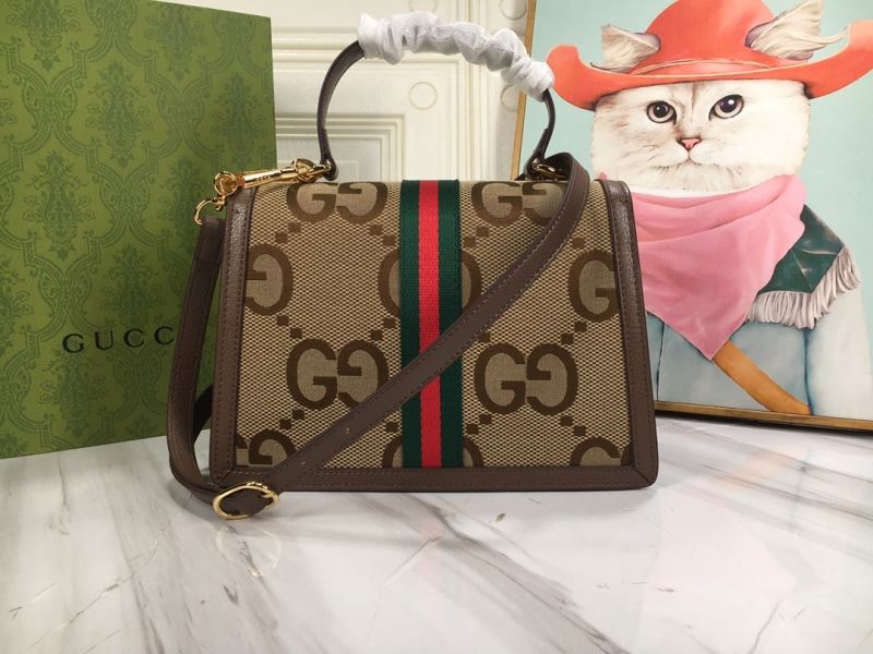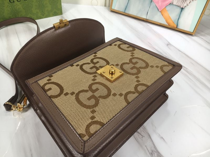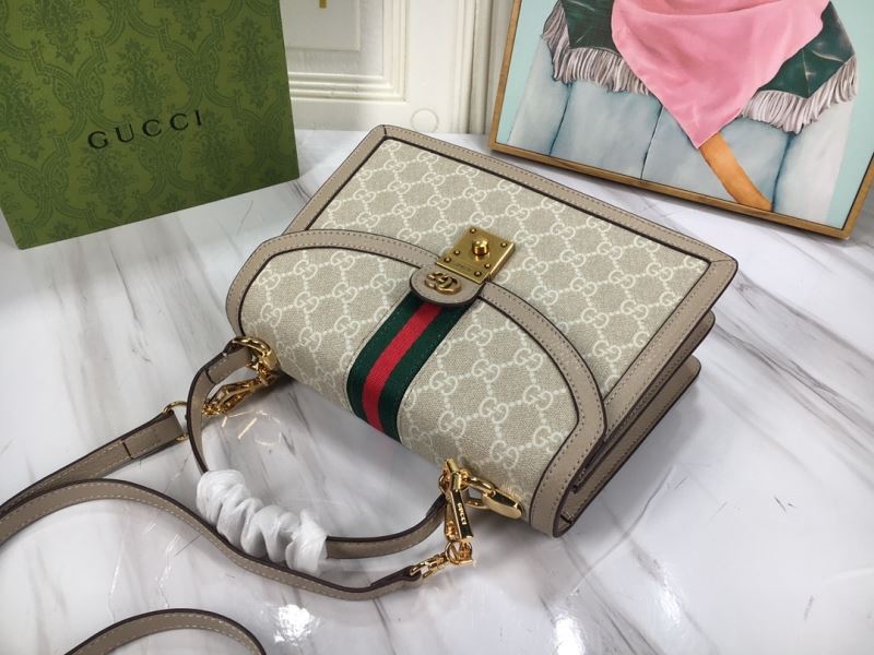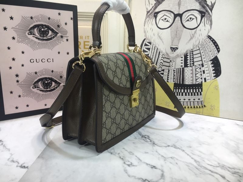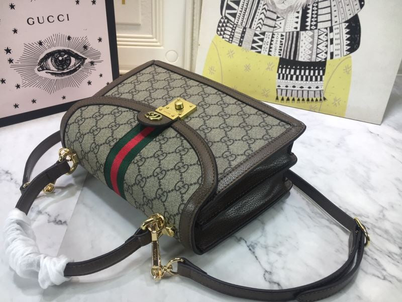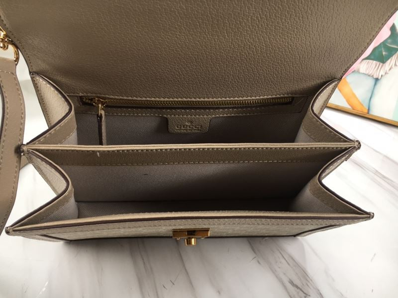 • Designed in GG Supreme beige canvas with taupe leather trim and Gucci’s classic green-red-green web stripe down the center.