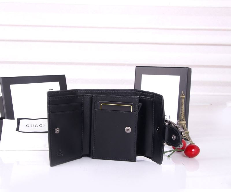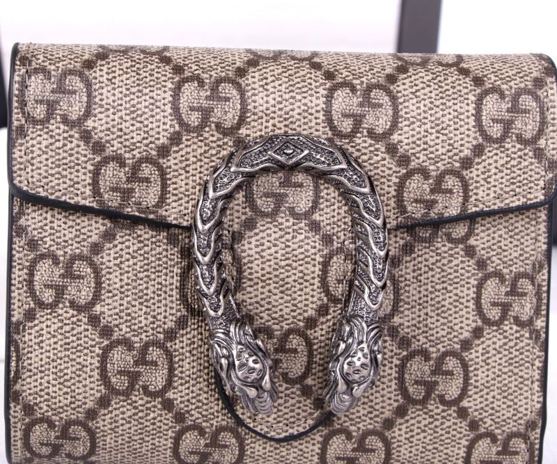 Step out in style with this Gucci Dionysus GG Supreme Compact Wallet – a high-quality replica crafted with premium canvas and leather. Features the iconic tiger head detail, multiple card slots, coin pocket with snap closure, and a spacious bill compartment all in a sleek tri-fold design.