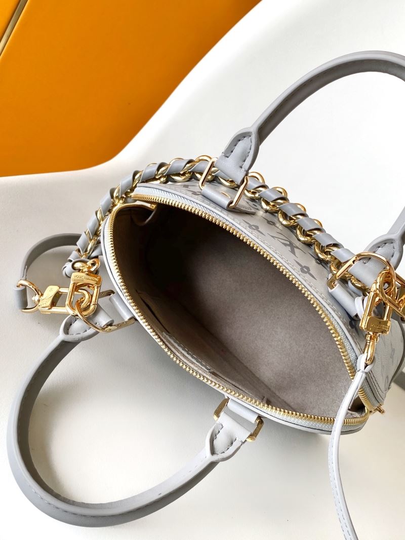 Drawing on the original bag from 1934, this version of the Alma BB bag belongs to the Monogram Ink Collection. It is crafted from smooth calfskin printed with the House’s signature Monogram in a subtle tone-on-tone finish. Designed with a classic leather strap, this edition also has a braided chain, a new detail that exudes elegance and refinement, while offering a short shoulder carry option.