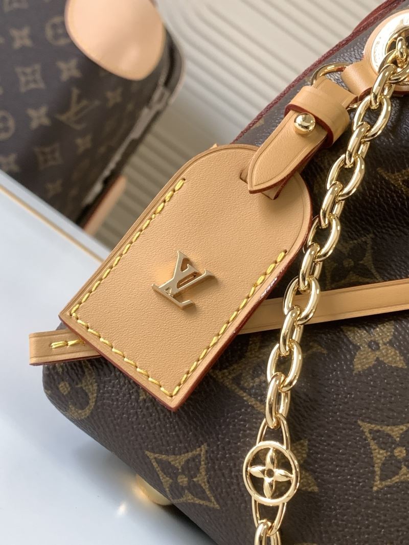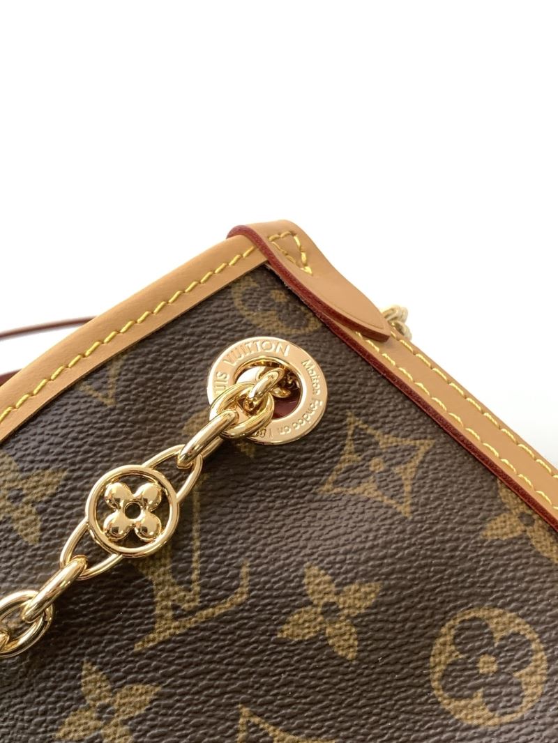 The iconic CarryAll BB is refreshed for the season in this chic day-to-evening edition. Crafted from the House’s Monogram canvas, it is embellished with a gold-toned chain adorned with Monogram Flowers. Signature details include a contrasting leather name tag, which beautifully matches the lace closure. Use the inside zipped pocket to keep an everyday credit card within easy reach.