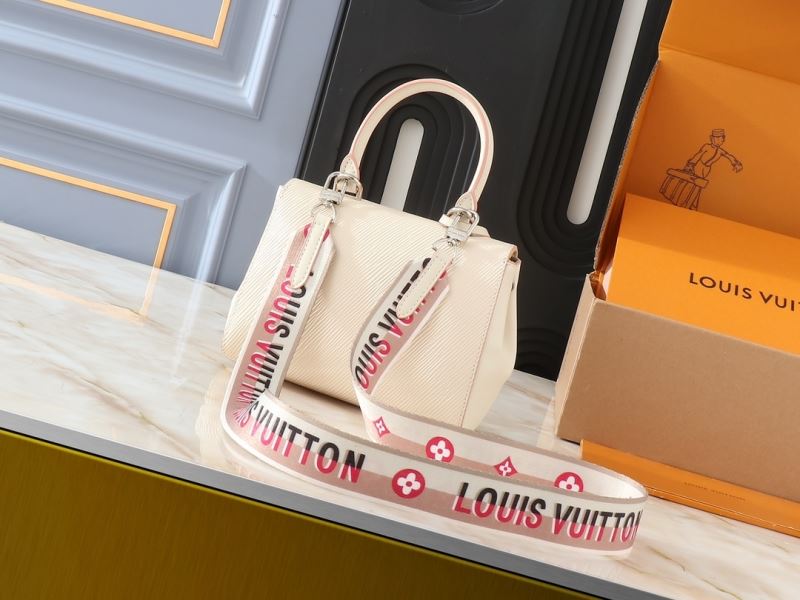 This exclusive Cluny Mini handbag features a reversible jacquard strap: one side displays the Louis Vuitton logo for a statement look; the other shows Monogram Flowers, for a subtle effect. Made from textured Epi leather, the bag also features an LV signature in smooth resin and a contrasting lining. The strap is removable for a more dressed-up allure.