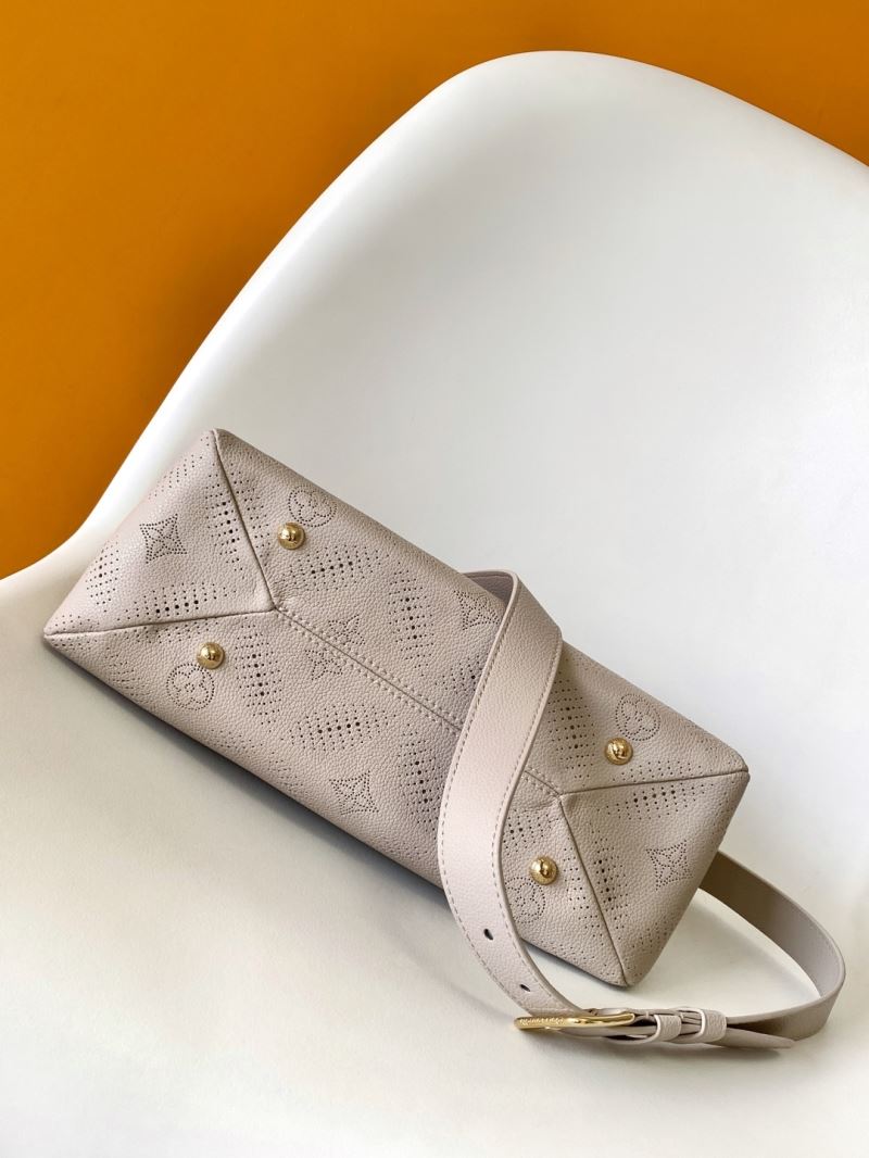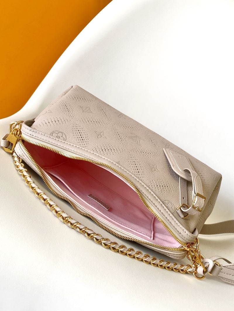 This Hand It All PM showcases the House's new Bloom signature, a reinvention of the perforated Mahina Monogram with a floral twist. Crafted from calfskin, it is elevated with a braided chain and comes with a signature name tag in a contrasting shade. Inside, there is a flat pocket to store a phone and it can be worn multiple ways, including cross-body and on the shoulder.