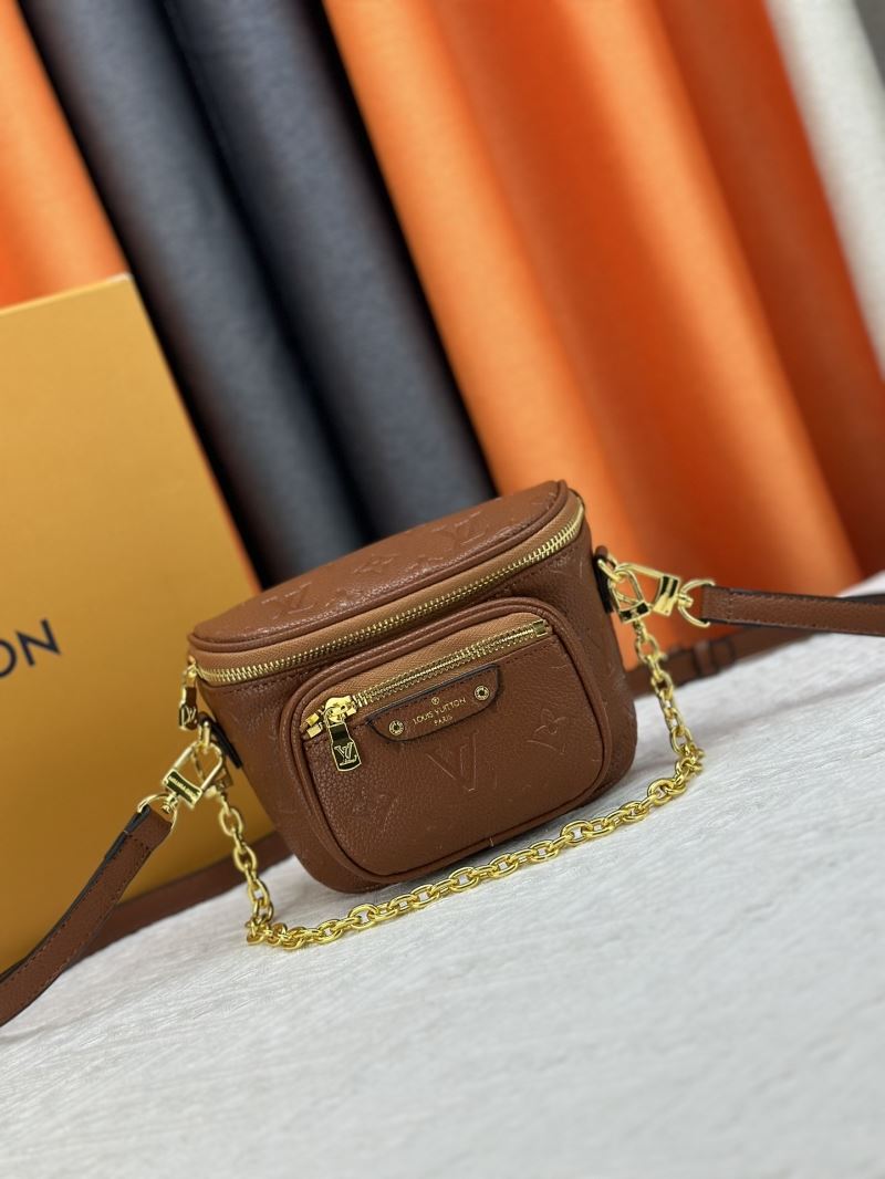 The Mini Bumbag is reinterpreted in supple, grained Monogram Empreinte leather, which is embossed with the Monogram pattern. This on-trend piece features a removable, adjustable strap and a removable, gold-tone chain for different looks and carry options. It has a zipped main compartment and a zipped front pocket with an embossed leather tag.