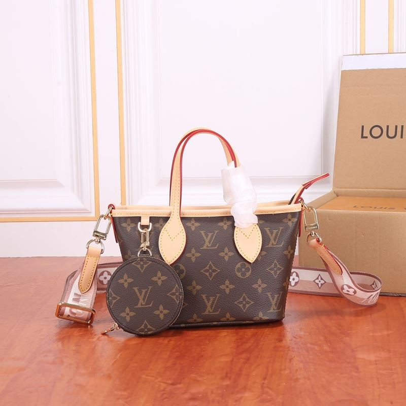 This season the House’s forever favorite, the Neverfull, gets reinvented as a mini-tote: the Neverfull BB handbag. This scaled-down version features an adjustable and detachable textile strap as well as a playful coin purse attached to a D-ring. It is just the right size for small essentials like a smartphone and compact wallet.