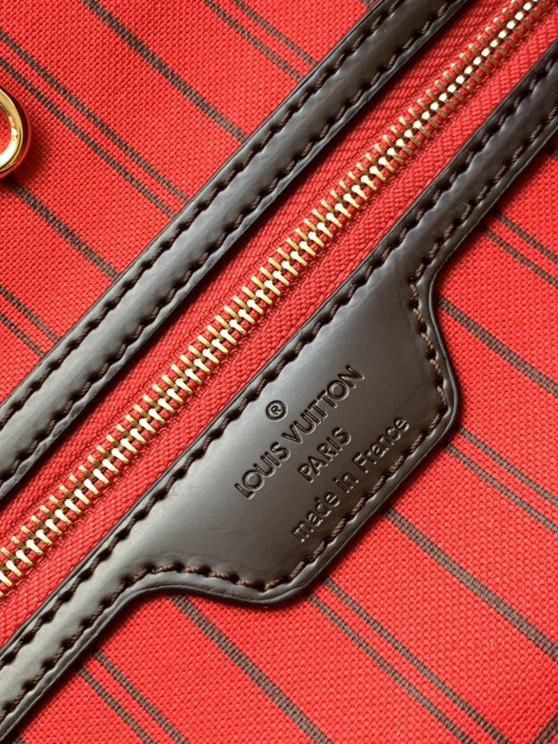 This spacious Louis Vuitton Neverfull GM in the classic Damier Ebene canvas is perfect for travel, work, or everyday use. It features a bold red striped textile lining, slim leather shoulder straps, and adjustable side laces that allow you to transform the silhouette. Durable and iconic, it’s the largest size in the Neverfull collection.