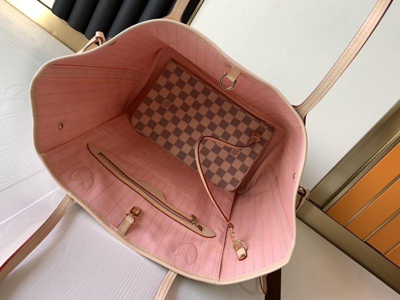 Crafted from premium coated canvas, the Louis Vuitton Neverfull MM in Damier Azur offers a fresh, elegant twist to your everyday tote. It features natural cowhide leather trim, gold-tone hardware, and a secure hook closure. The spacious interior is available in two stylish options—soft pink lining or classic cream, both with a removable zip pouch for added convenience.