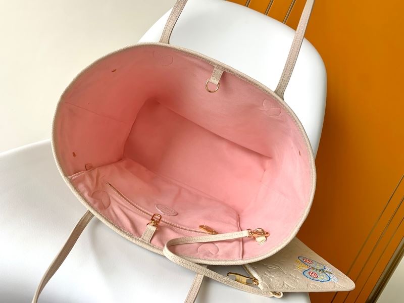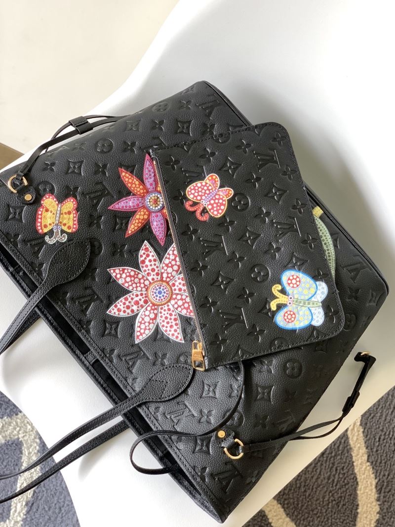 Turn heads with this eye-catching limited edition of the iconic Neverfull MM, featuring an embossed Monogram canvas adorned with colorful embroidered-style flowers, butterflies, and LV symbols. This stunning tote blends elegance and whimsy, perfect for spring or adding personality to any outfit year-round.
