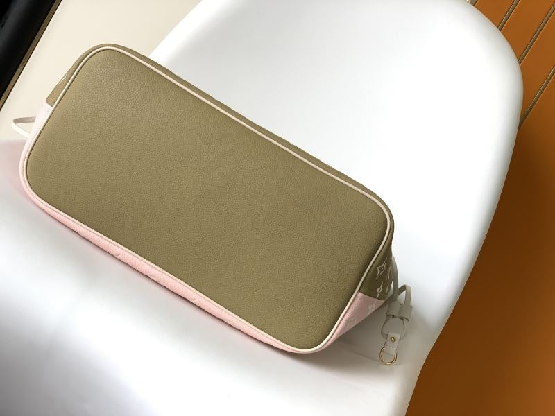 This gorgeous Neverfull MM features a refreshing khaki green exterior with white Monogram print and a light pink interior for a soft, feminine contrast. Designed for daily use or chic travel, this tote comes with slim leather straps, a detachable pouch, and a signature round “Louis Vuitton Paris” tag.