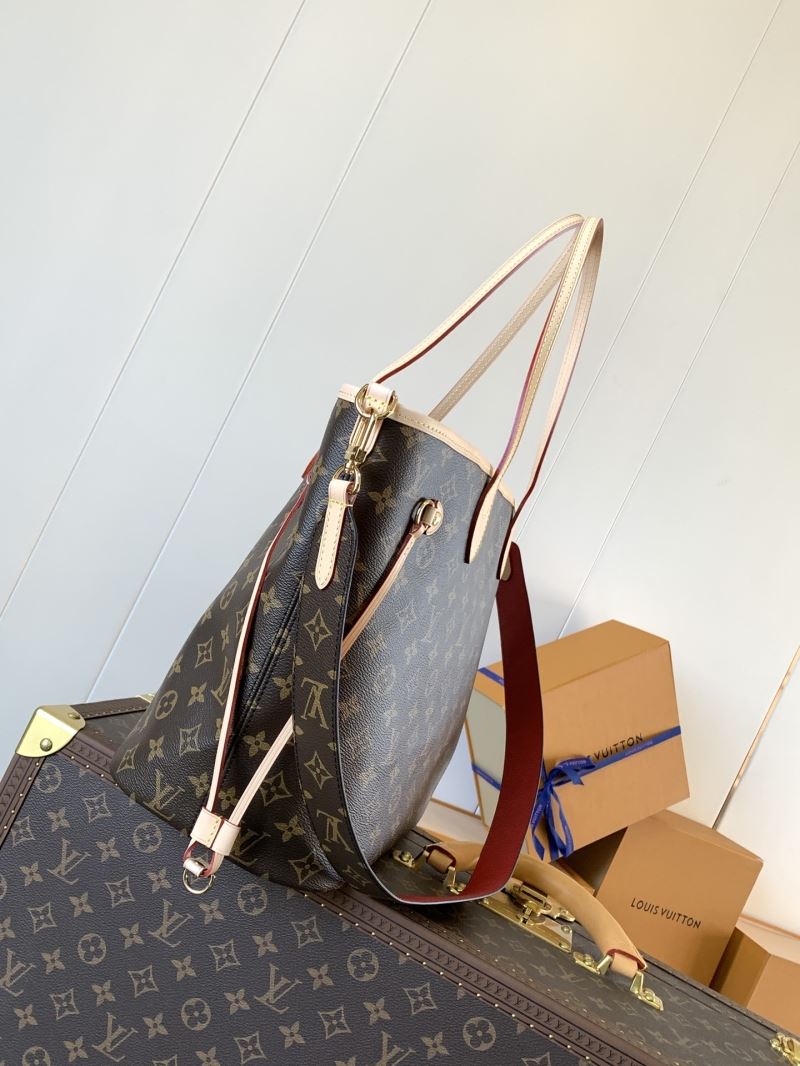 A timeless icon, the Neverfull MM in classic Monogram canvas is spacious, stylish, and effortlessly practical. It features natural cowhide leather trim, gold-tone hardware, and a bold red interior lining. With side laces that can be cinched for a sleek silhouette or loosened for a more casual look, this tote is perfect for both everyday use and travel.