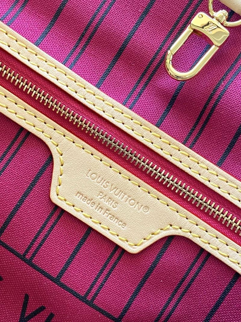 This Louis Vuitton Neverfull MM features the signature Monogram canvas paired with natural leather trim and a bold pink interior. What sets this piece apart is the added detachable crossbody strap for hands-free versatility. Includes adjustable side ties, dual top handles, and a spacious interior perfect for daily essentials.