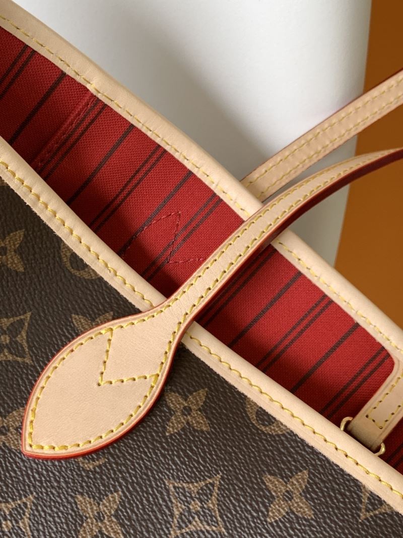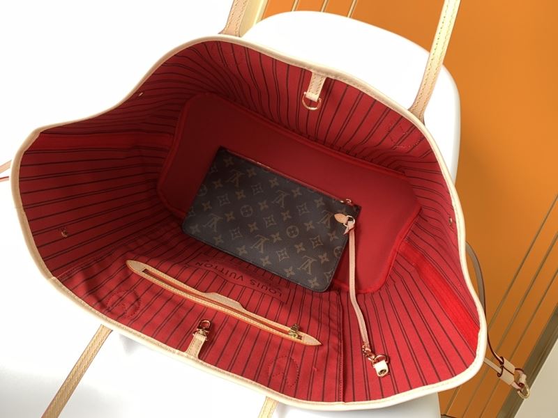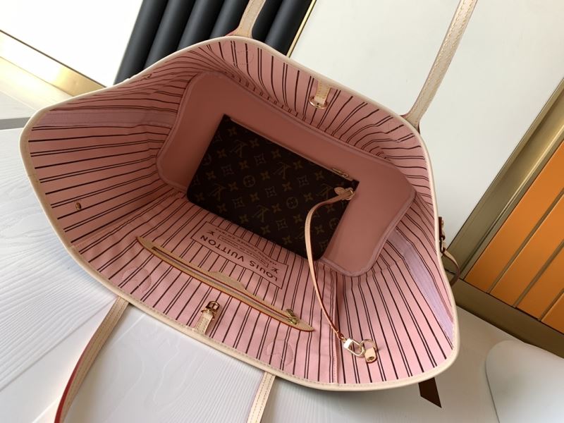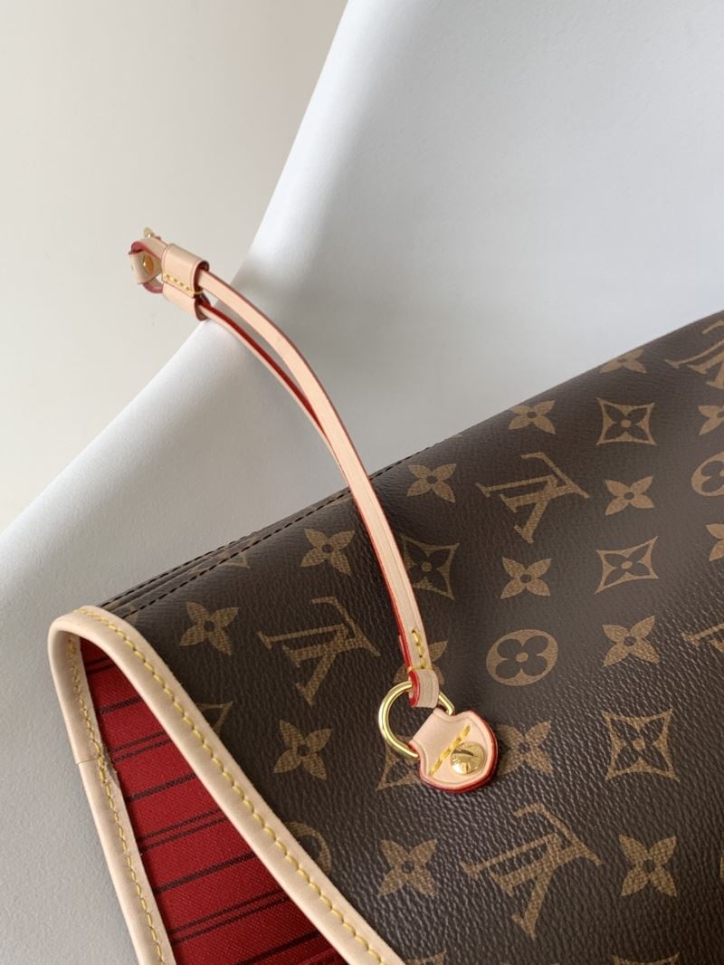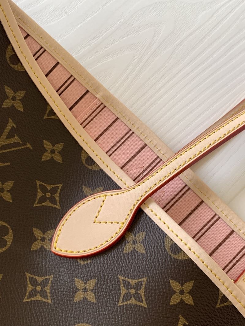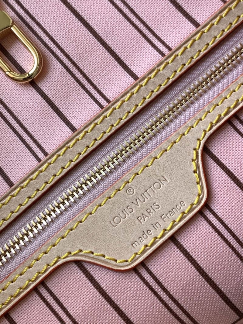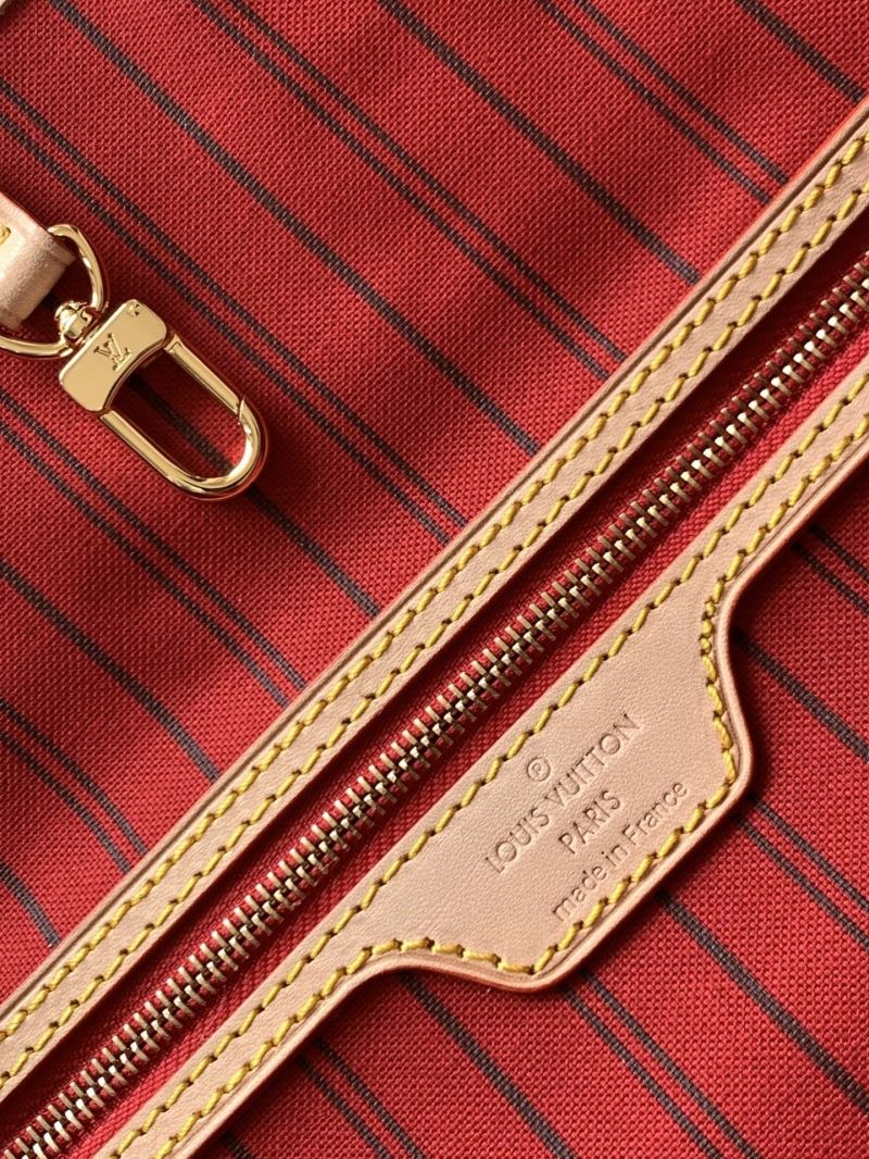This iconic Louis Vuitton Neverfull GM tote features the classic Monogram canvas with two vibrant interior lining options: soft baby pink or rich red. Both styles come with a removable matching pouch, spacious interior, and adjustable side drawstrings.