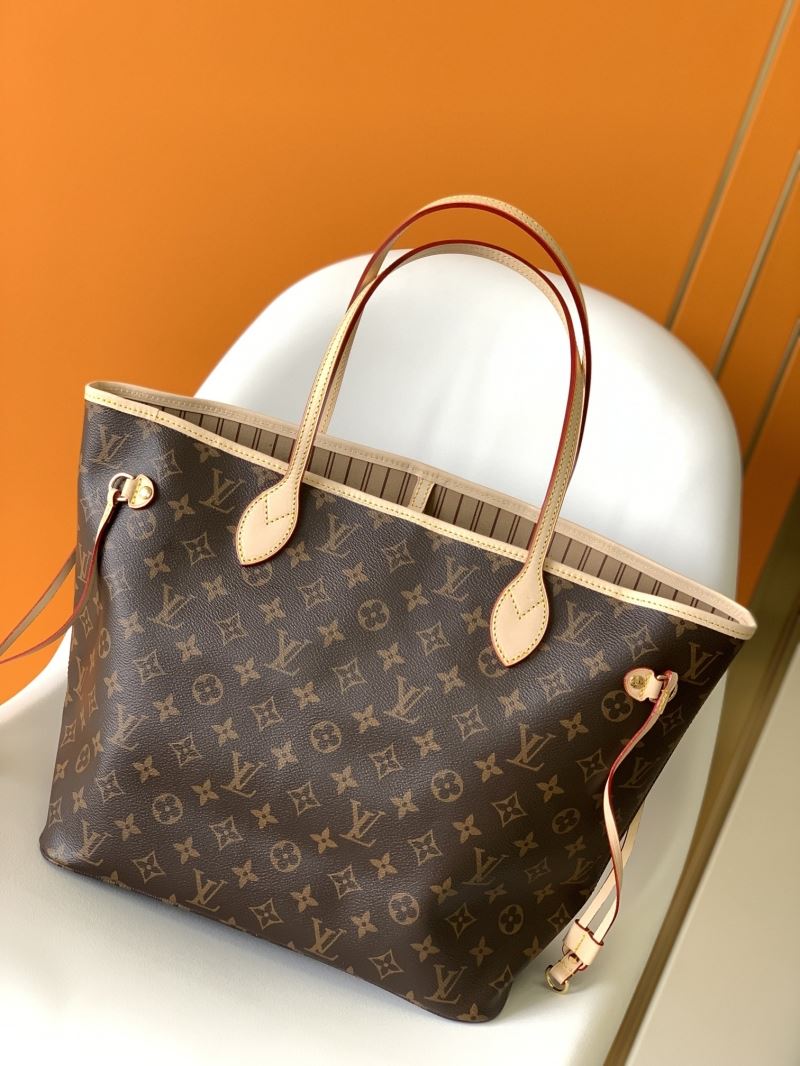 A timeless classic, the Louis Vuitton Neverfull MM in Monogram canvas is a staple for any collection. Designed with beige striped interior lining, this medium-sized tote perfectly balances space and style. Lightweight and comfortable on the shoulder, it includes a detachable matching pouch for added convenience.