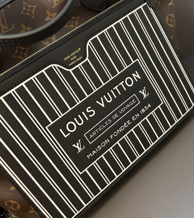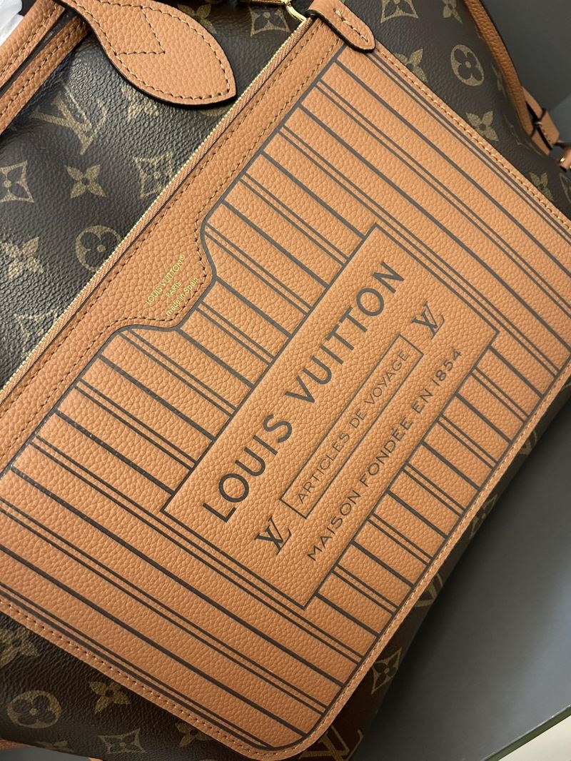 Elevate your daily style with this luxurious Louis Vuitton Neverfull tote featuring the iconic Monogram canvas exterior paired with a unique reverse striped interior and matching detachable zip pouch. Designed with golden hardware, leather trim, and adjustable side drawstrings, this tote offers both spaciousness and elegance.