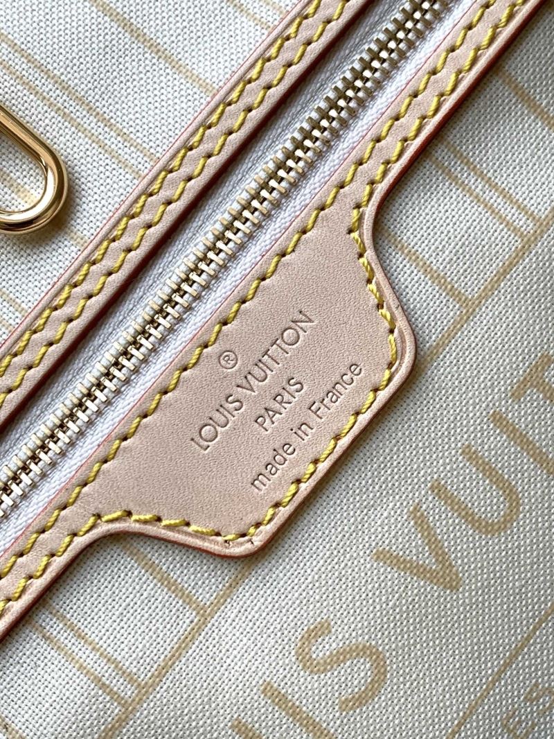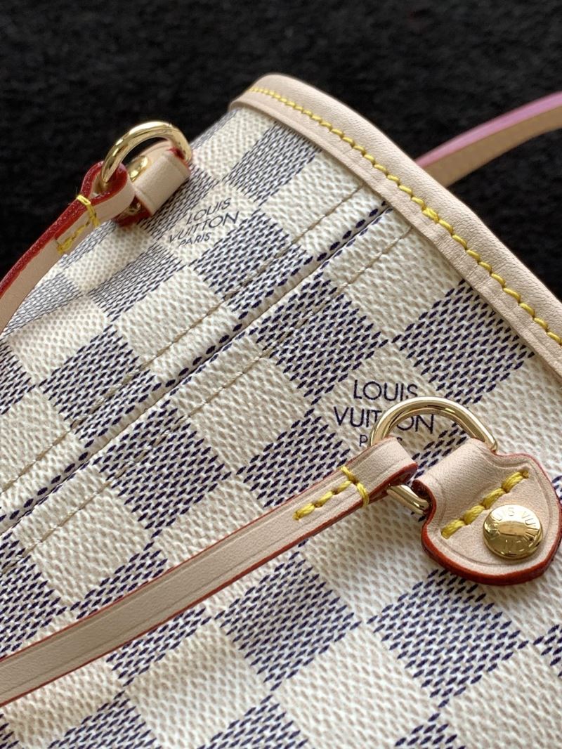 This Louis Vuitton Neverfull PM is crafted from classic Damier Azur coated canvas with natural cowhide leather trim. It features a soft interior lining available in two elegant options – pastel pink or light cream – both designed to add a feminine and chic touch. Includes a removable zip pouch that can be used as a clutch or additional storage. Gold-tone hardware and adjustable side laces complete the stylish and functional design.