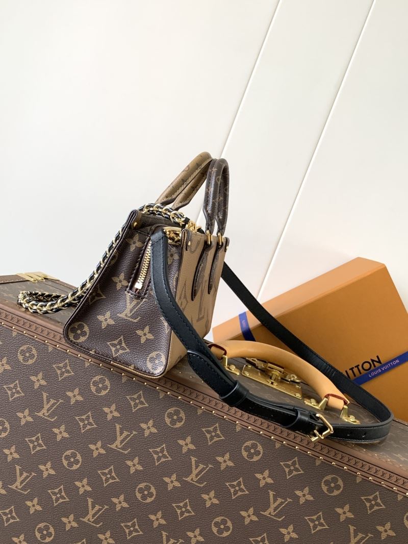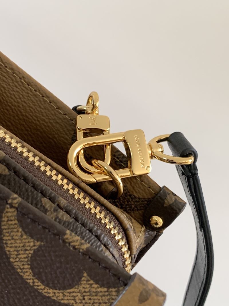 Showcasing the House’s Monogram Giant signature, this OnTheGo East West is a sophisticated everyday choice. Crafted from coated canvas, it is accented with Monogram Reverse coated canvas trims and gold-toned hardware. Fitted with two handles, a removable and adjustable strap, and a removable chain, the versatile design can be worn in a variety of ways and includes multiple compartments and pockets to keep valuables organized.