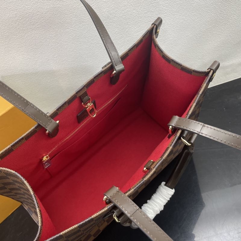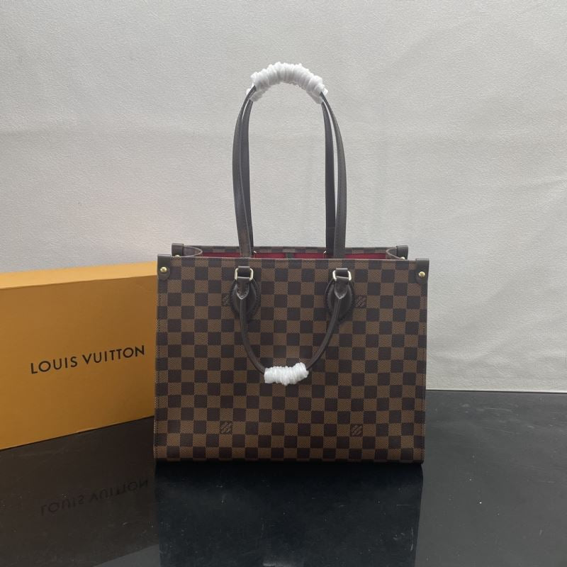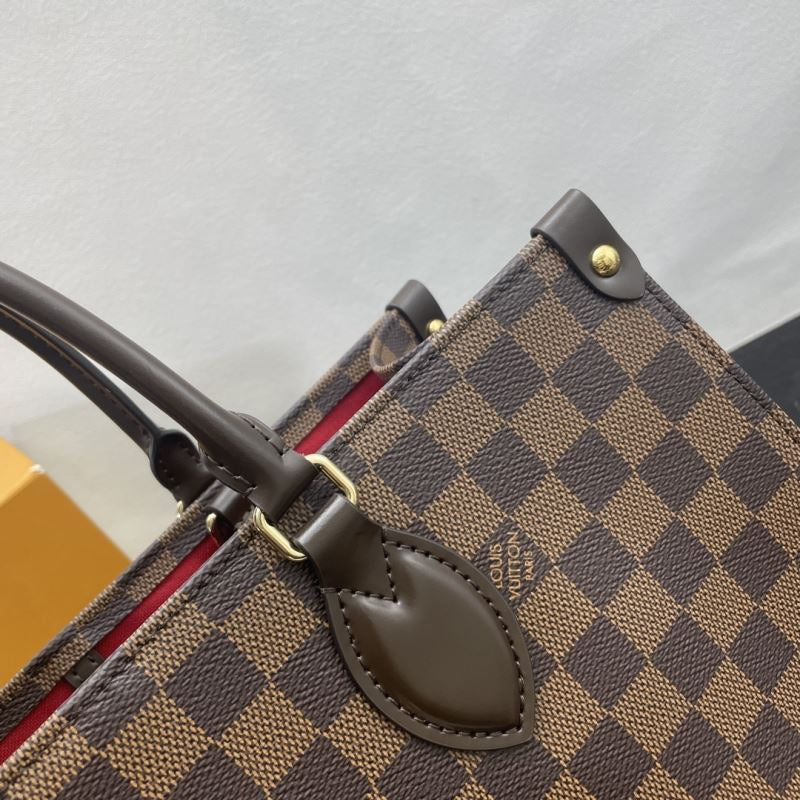 The OnTheGo MM in Damier Ebene canvas is a sophisticated and spacious everyday tote, combining the iconic checkerboard pattern with deep brown leather trim. Designed for versatility, it features both top handles and longer shoulder straps for multiple carrying options. Perfect for work, errands, or travel.