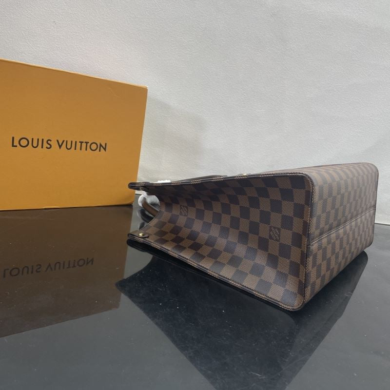 Material: Damier Ebene coated canvas with smooth brown leather trim and gold-tone hardware
