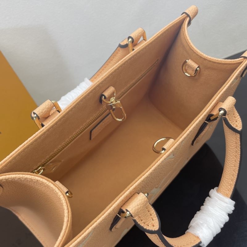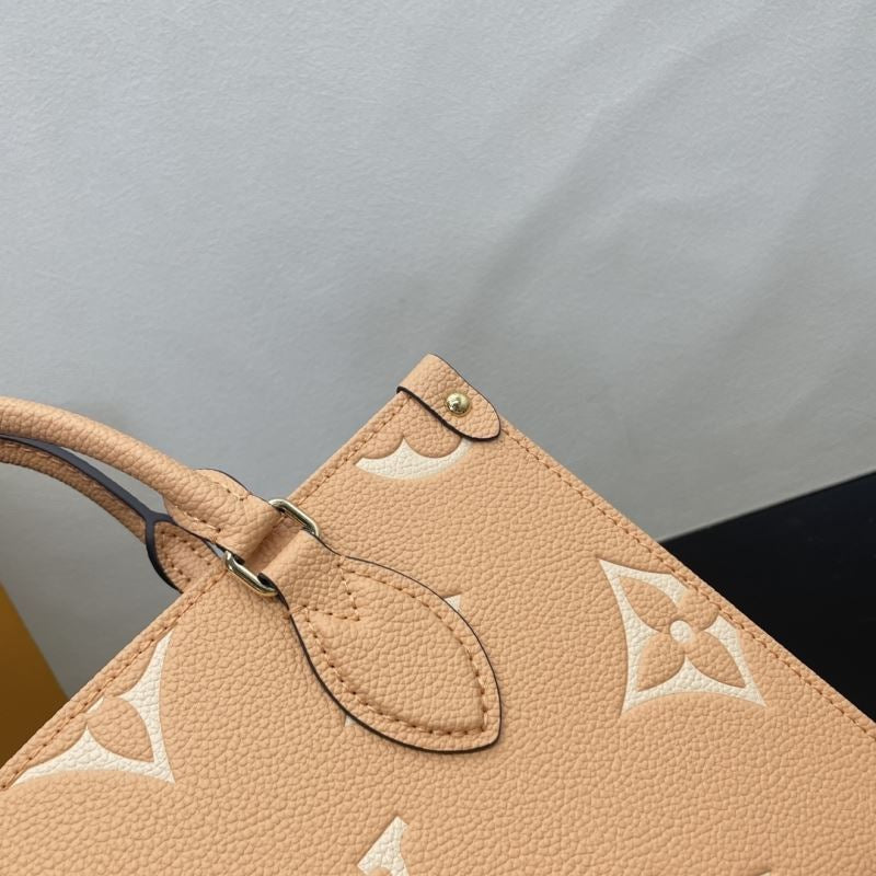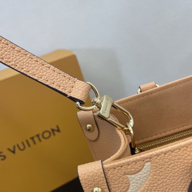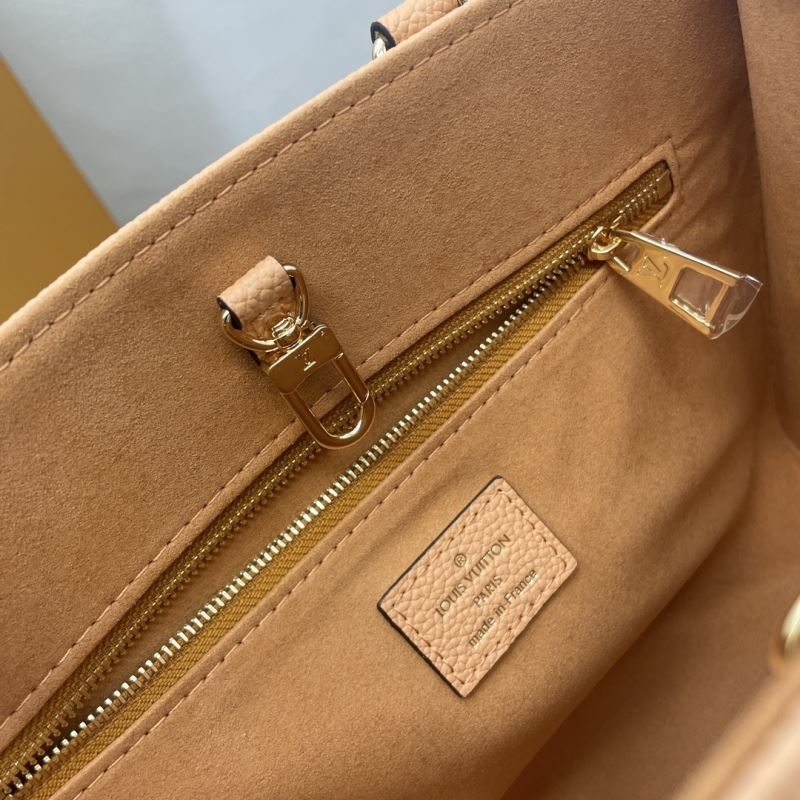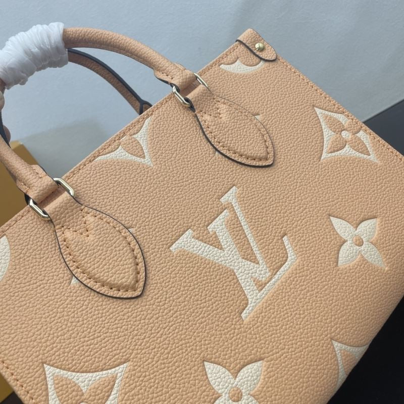 Chic and compact, the OnTheGo PM in soft beige Monogram canvas is perfect for a polished, feminine look. With dual top handles and a detachable strap, it transitions easily from hand carry to crossbody wear.