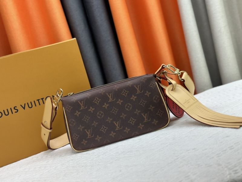 The Pochette Accessoire XL is made from Monogram Dust canvas, with a Monogram pattern seemingly weathered by time. This masculine reinterpretation of the 1990’s Louis Vuitton icon features a roomy zipped main compartment with a flat pocket. It boasts a decorative name tag with fringes and a red "Marque L.Vuitton Déposée" charm, both detachable.