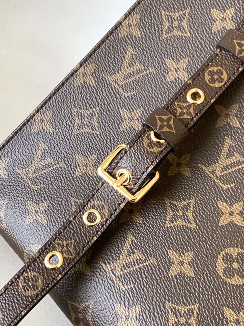 This Sac Plat PM is a compact yet eye-catching reinterpretation of a classic Louis Vuitton silhouette. Crafted in Monogram canvas with natural leather handles, this elegant tote features a structured design, top handles, and a detachable crossbody strap for added versatility. It’s the perfect piece for stylish everyday wear.