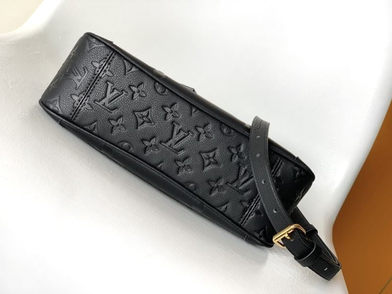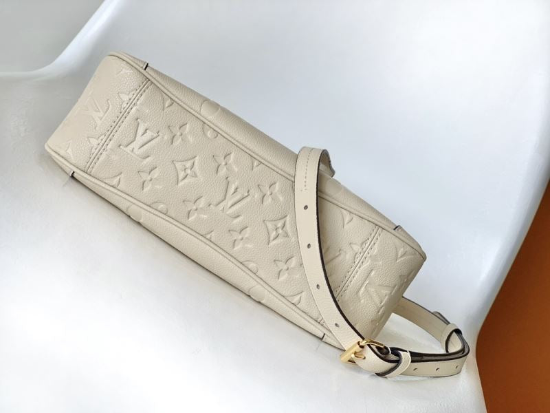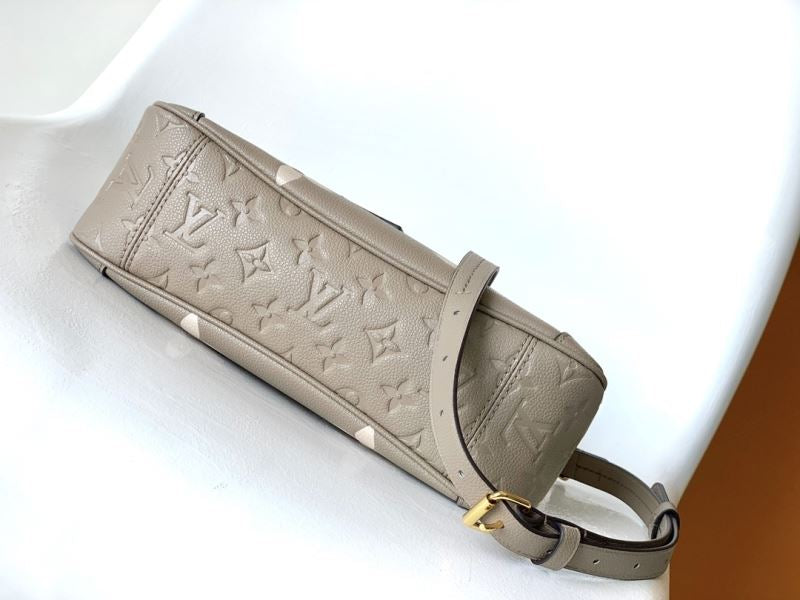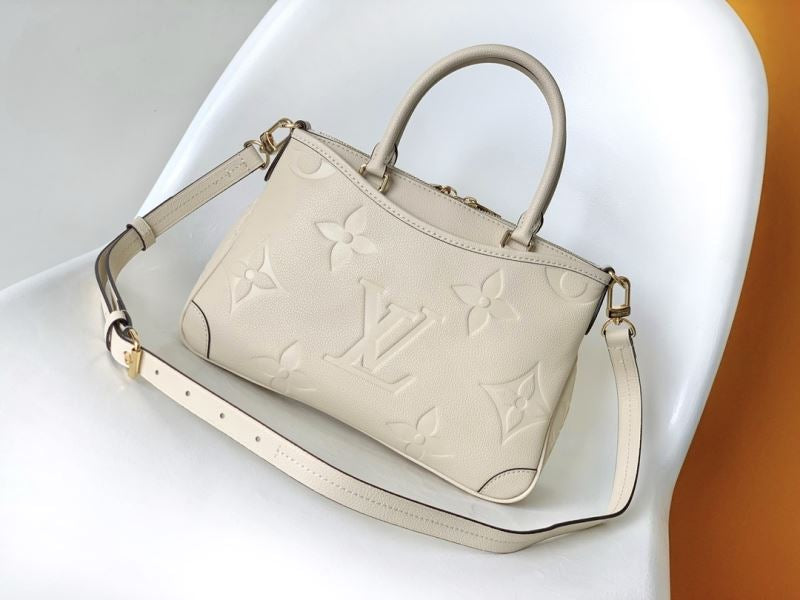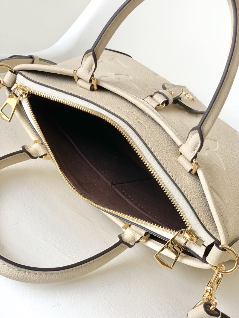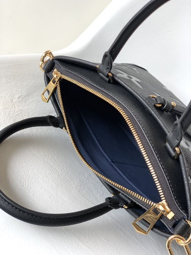 With its more compact format and multiple zipped compartments, this Trianon PM handbag in embossed Monogram Empreinte leather is the perfect alternative to the traditional tote. Its V-cut lines are inspired by the emblematic Louis Vuitton Pallas bag. Two top handles, as well as a detachable shoulder strap, make it comfortable to carry.