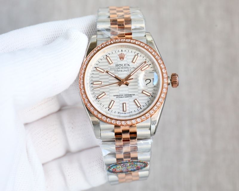 Each watch includes the iconic date display with cyclops magnification at 3 o’clock and classic Rolex detailing. Whether you prefer the subtle sparkle of diamonds or a bold contrast with rose gold, these timepieces are a true statement of timeless elegance.