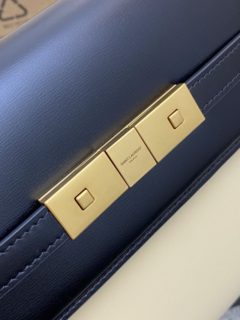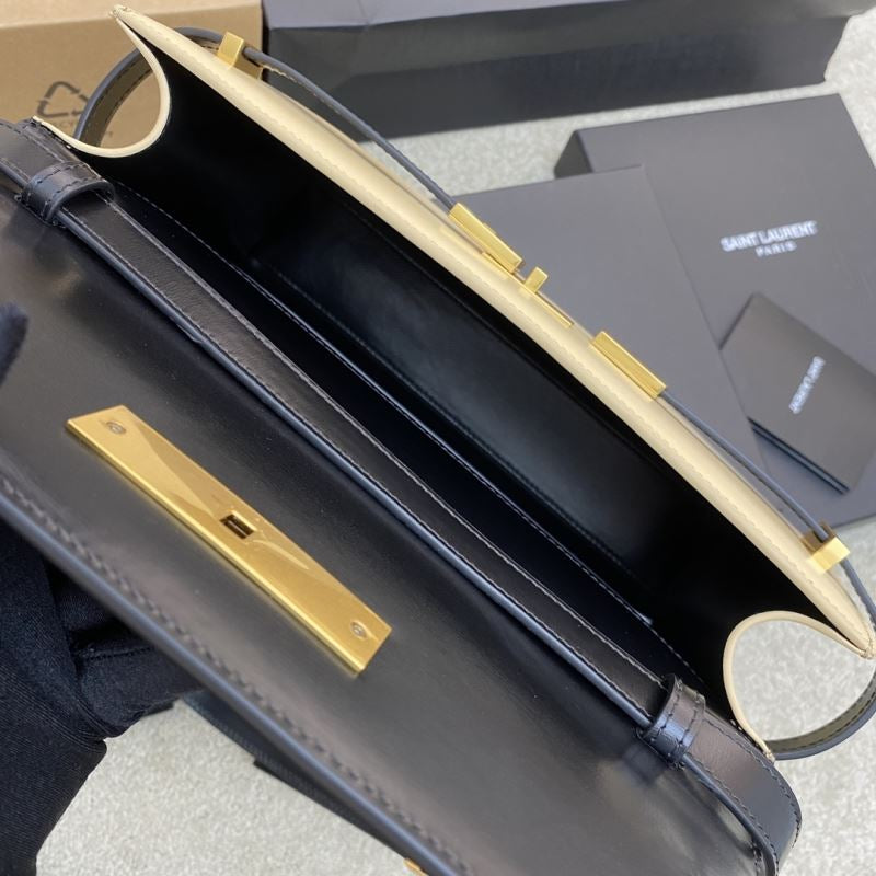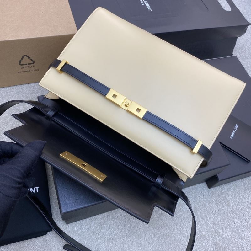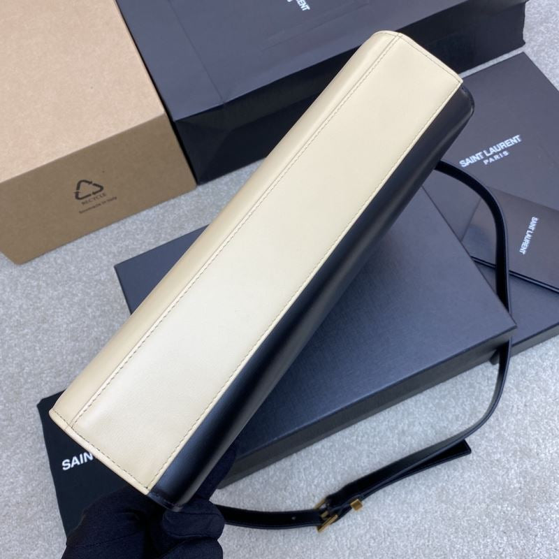 Turn heads with this two-tone edition of the Manhattan Baguette Bag, blending classic black and soft beige tones. Finished with minimalist gold square buckle detailing, it’s a perfect mix of modern and timeless.