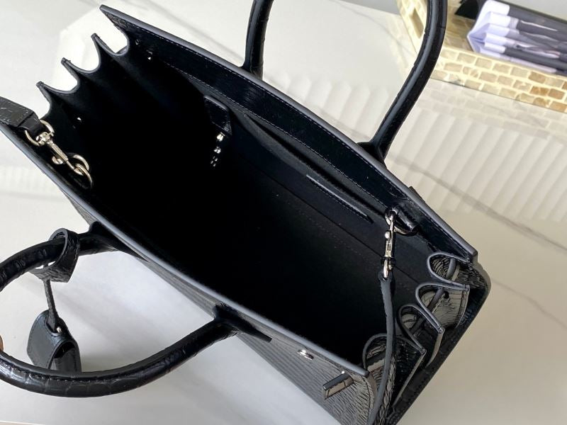 Make a bold and timeless statement with the Saint Laurent Sac de Jour in sleek black crocodile-embossed leather. This structured beauty features dual top handles, a detachable long strap for crossbody wear, and signature padlock detail. The textured finish adds elegance while the spacious interior keeps your essentials organized in true luxury style.