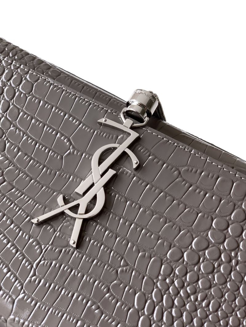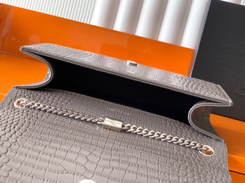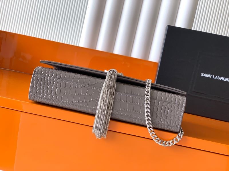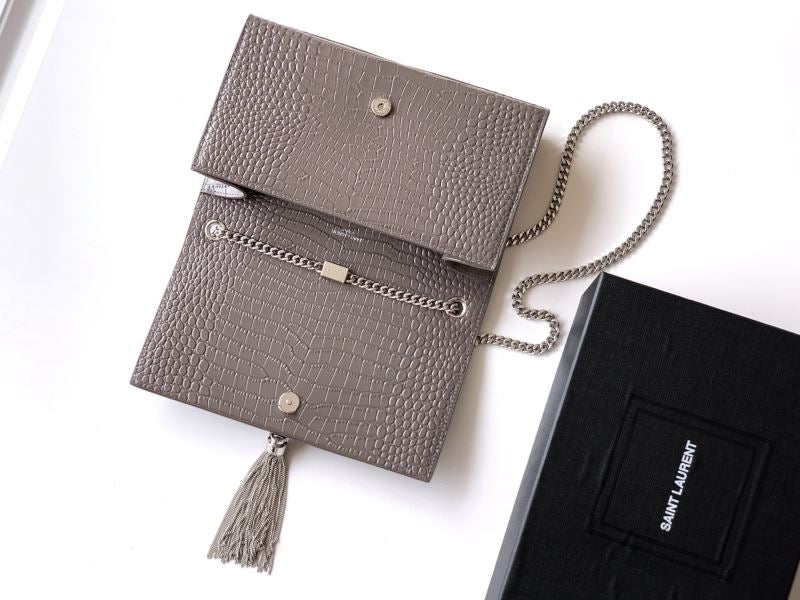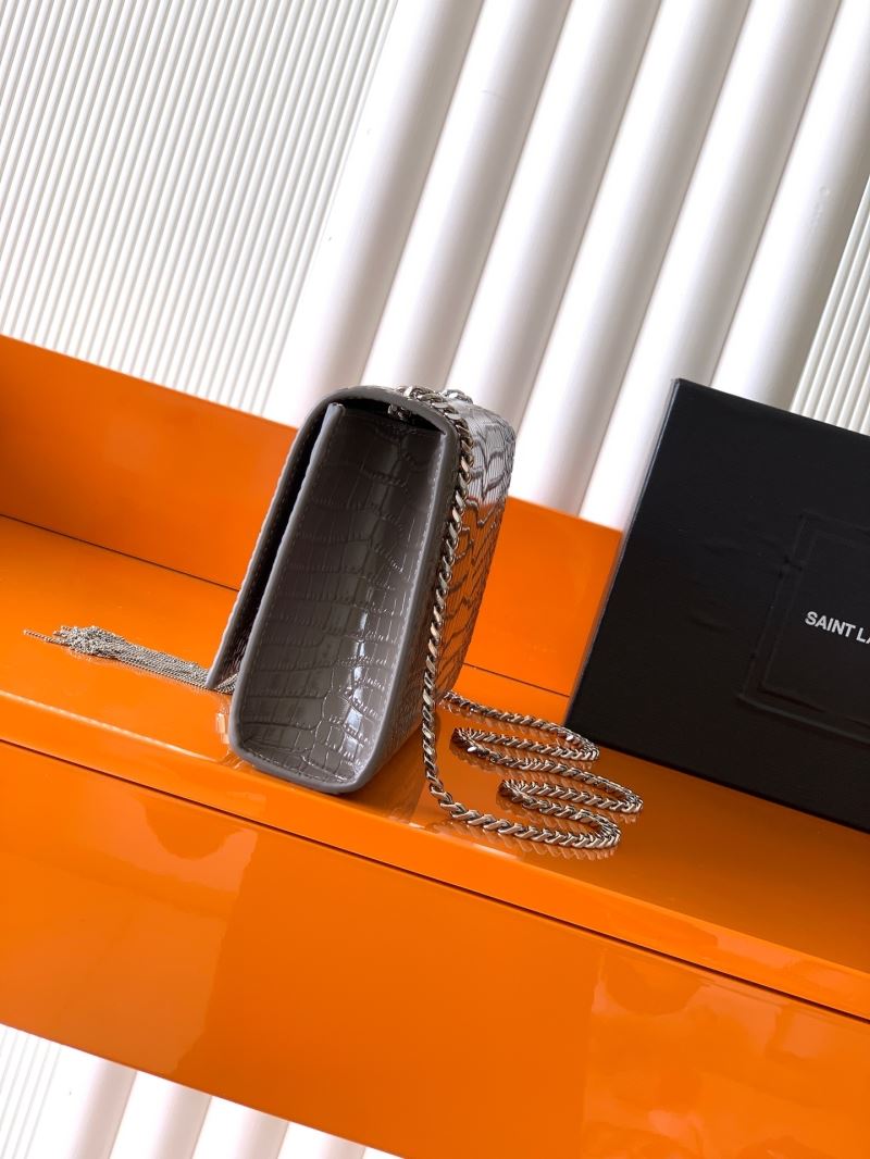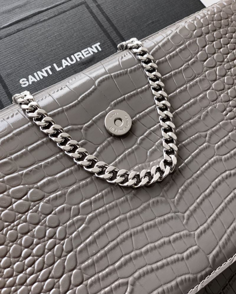 This stunning envelope-style YSL replica is made from crocodile-embossed faux leather and accented with a silver YSL logo and statement chain tassel. It’s the perfect day-to-night piece, fitted with a sleek silver chain strap and secure magnetic closure.