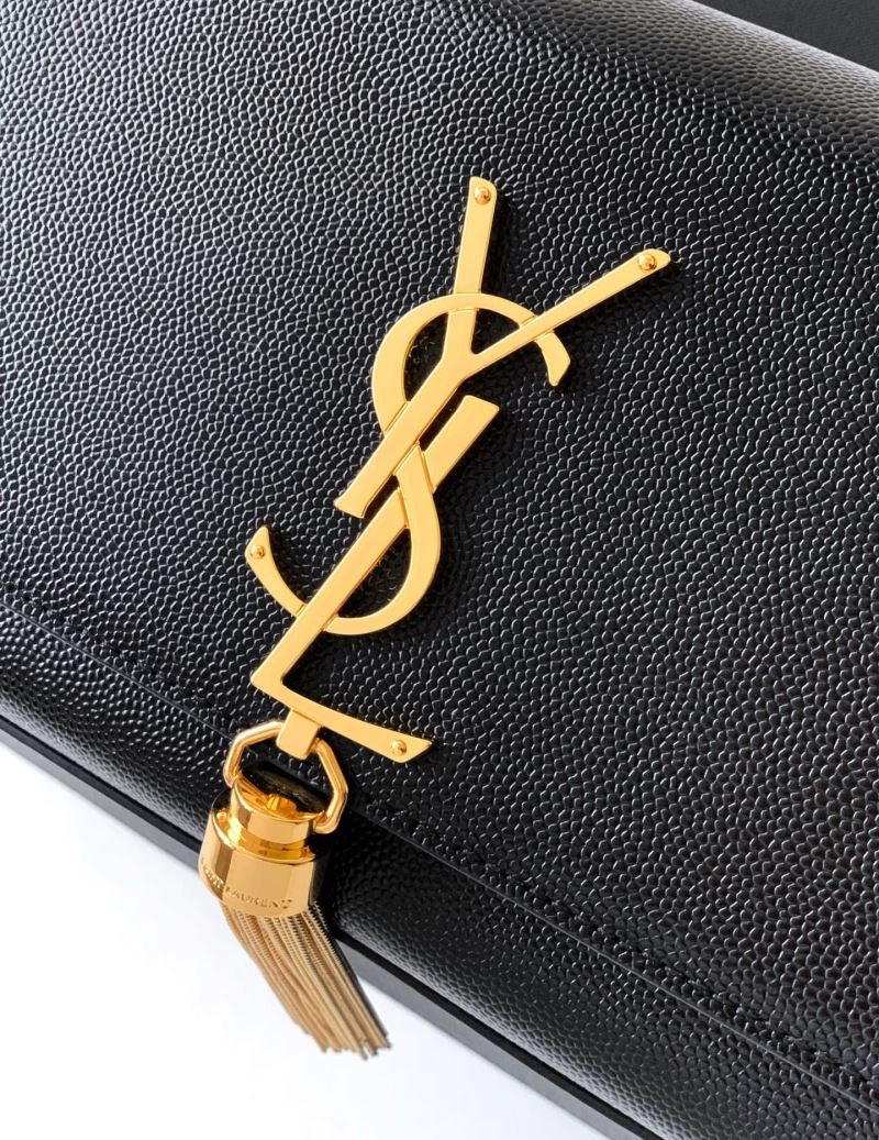 • Iconic YSL monogram logo with hanging tassel