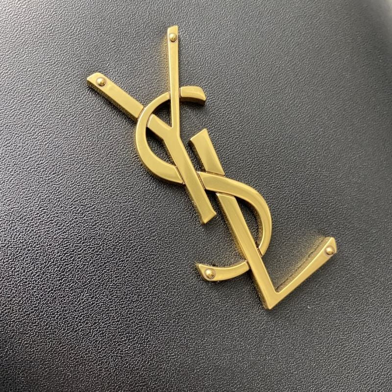 This sleek YSL Leather Bucket Bag is the perfect blend of structure and luxury. Designed in a polished black leather finish with gold YSL hardware, it features a built-in top handle slot and a detachable crossbody strap for versatile wear. A modern statement piece that can elevate any outfit.