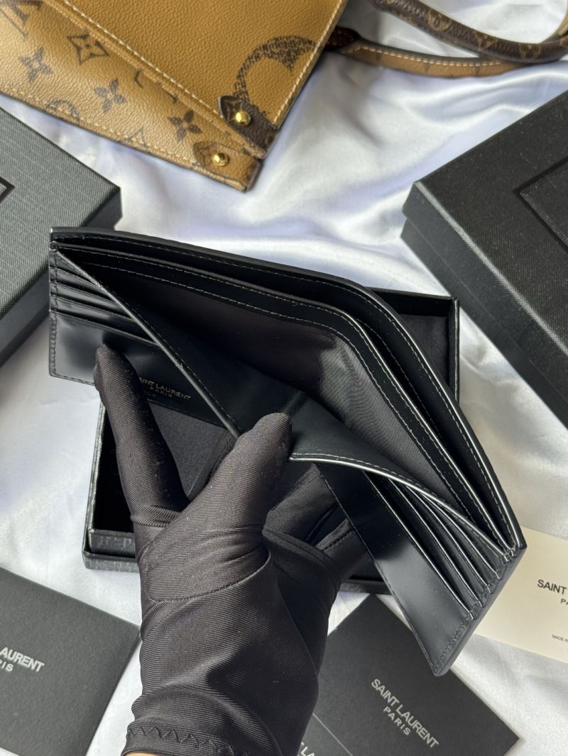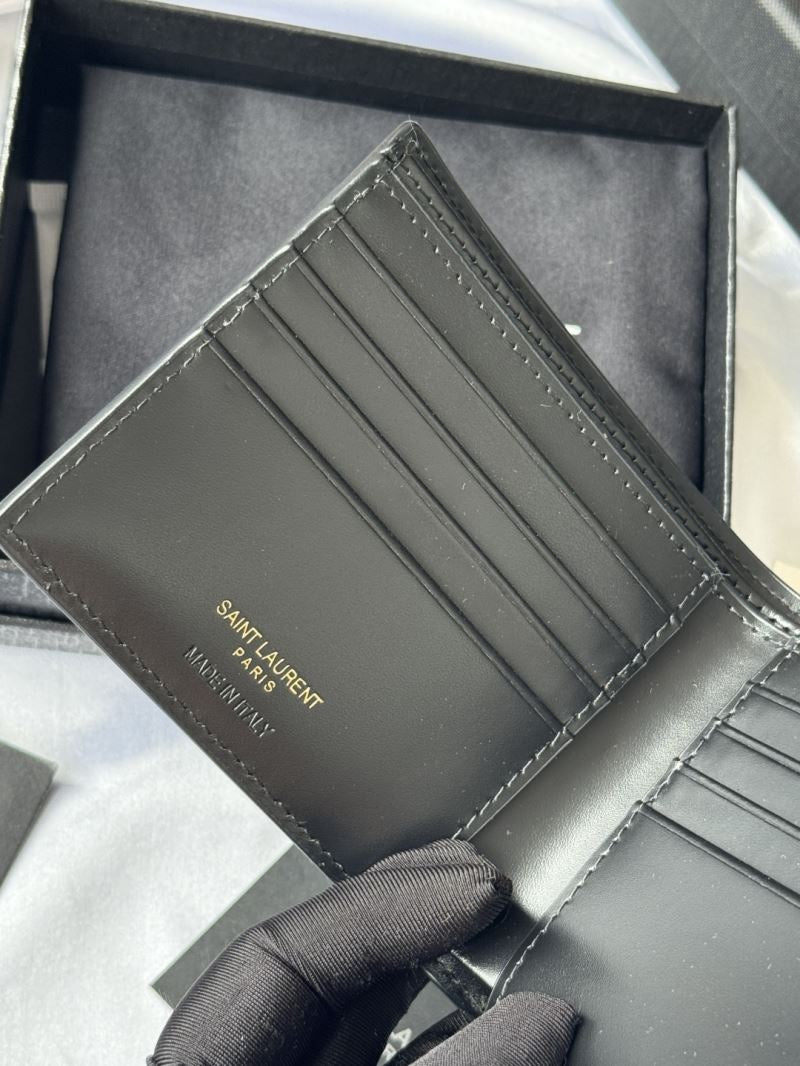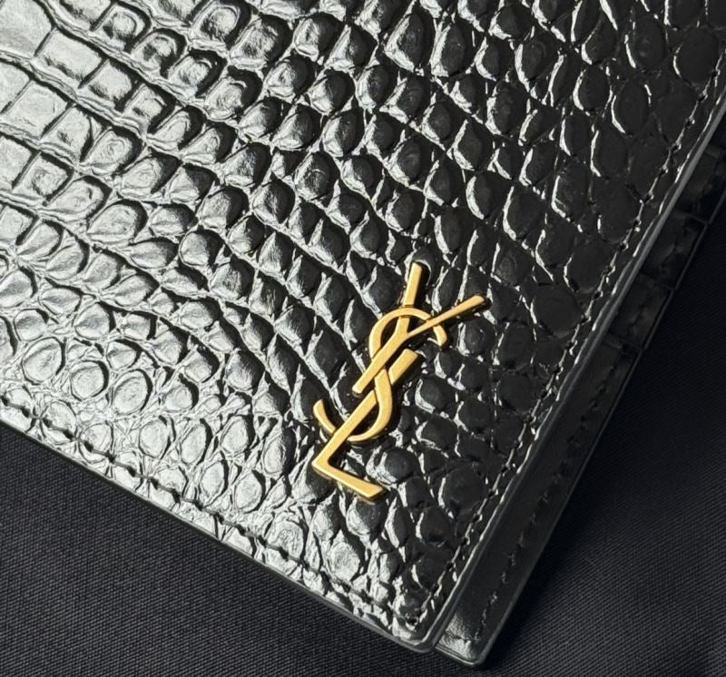 Crafted from high-quality cowhide leather with a luxurious crocodile pattern, this sleek black Saint Laurent bi-fold wallet is a refined essential for the modern man. Adorned with a gold-tone YSL metal logo, it balances bold style with everyday functionality.