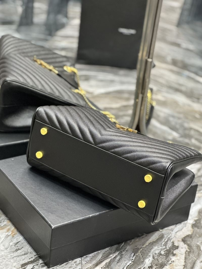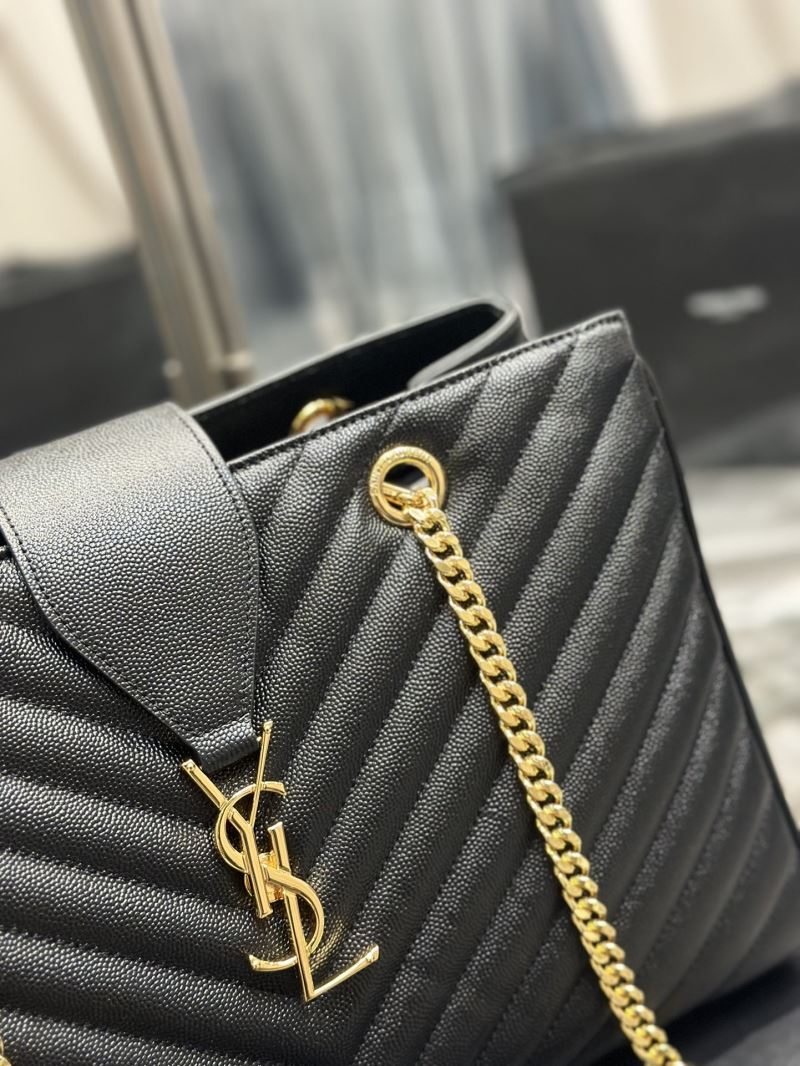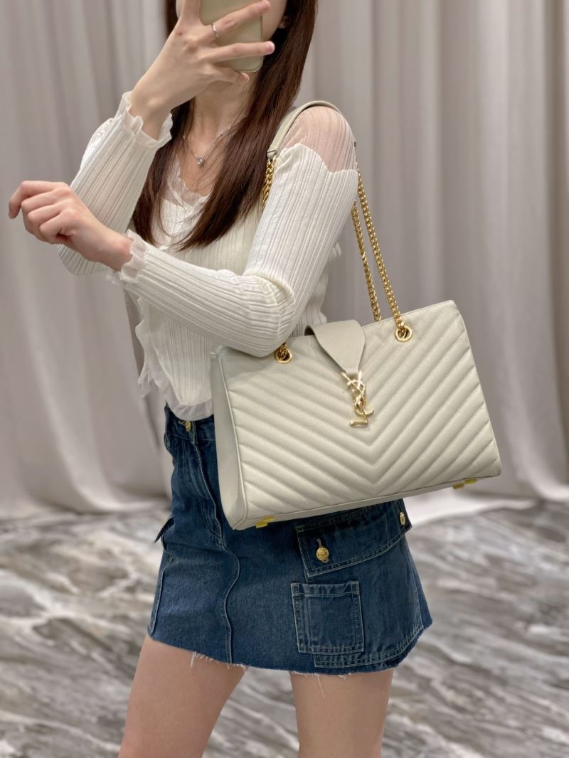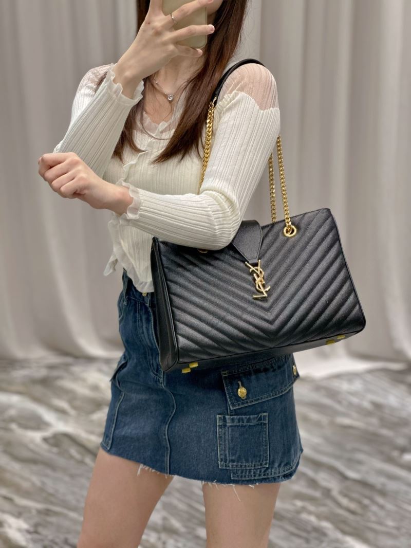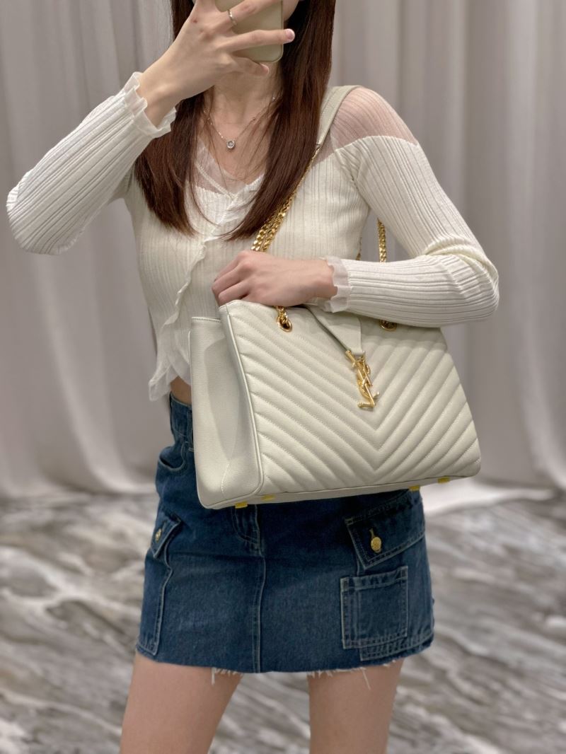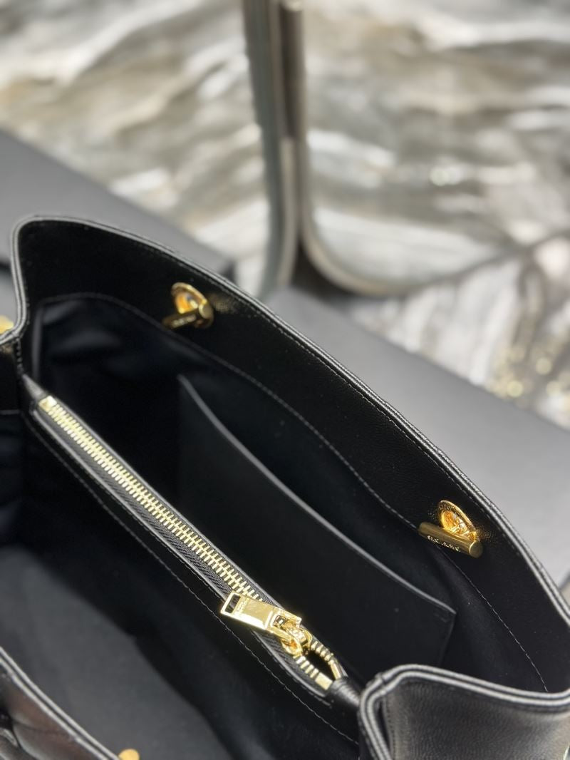 Elevate any outfit with this elegant quilted tote bag, featuring the iconic YSL gold logo and chain strap detailing. Its structured silhouette and luxe finish make it perfect for both day and night wear.