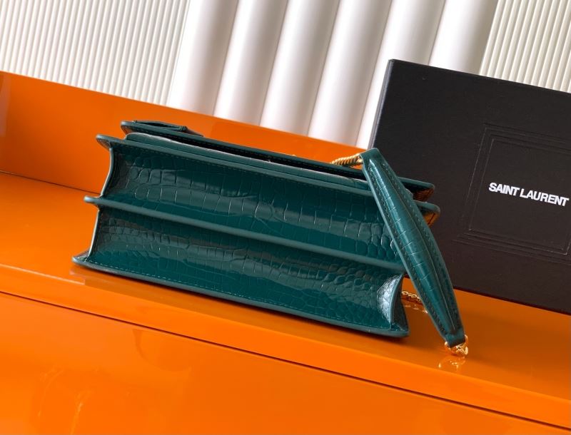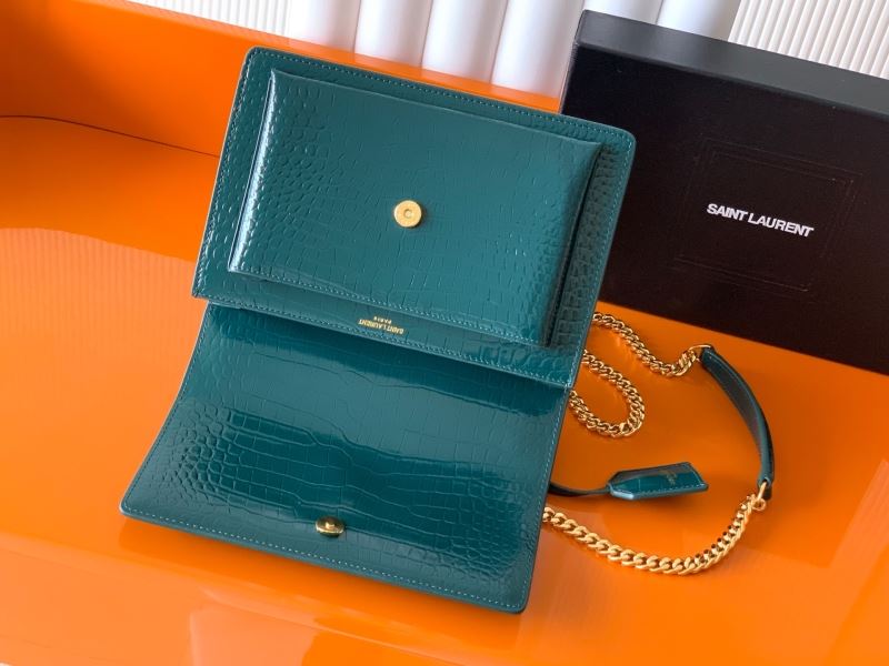• Features gold-tone YSL logo hardware and structured flap closure