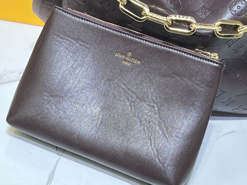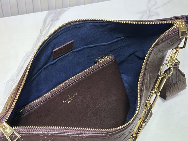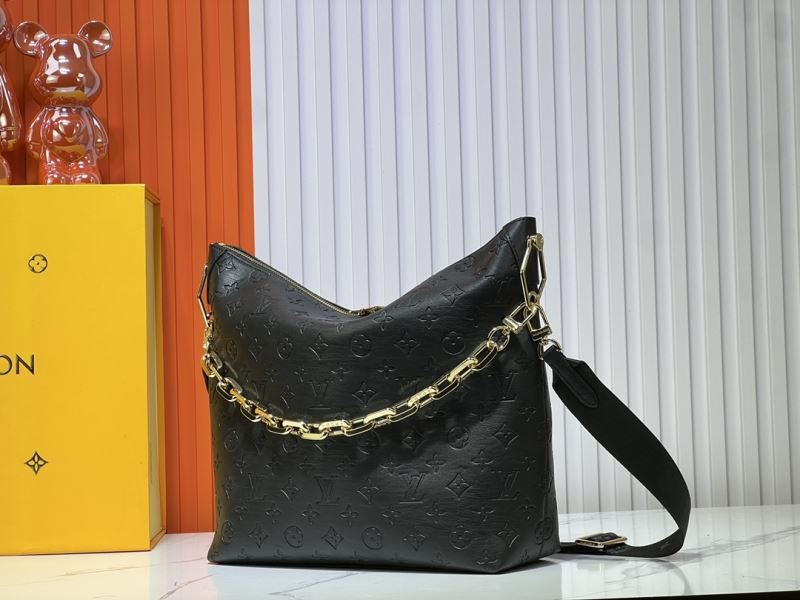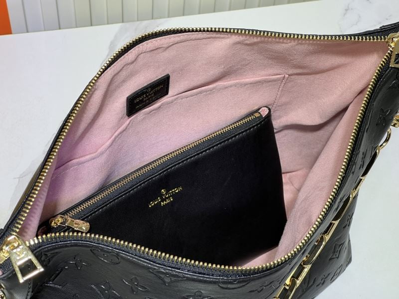 A statement addition to the Coussin line, this new Hobo model strikes the balance of fashionable and functional. Showcasing signature design details from the collection, it is crafted from smooth padded leather embossed with the House’s Monogram and has an iconic chunky chain accented with gold-toned hardware. The large removable textile strap offers multiple wearing options. This versatile piece also includes a removable zipped pouch and is sized to store a laptop.